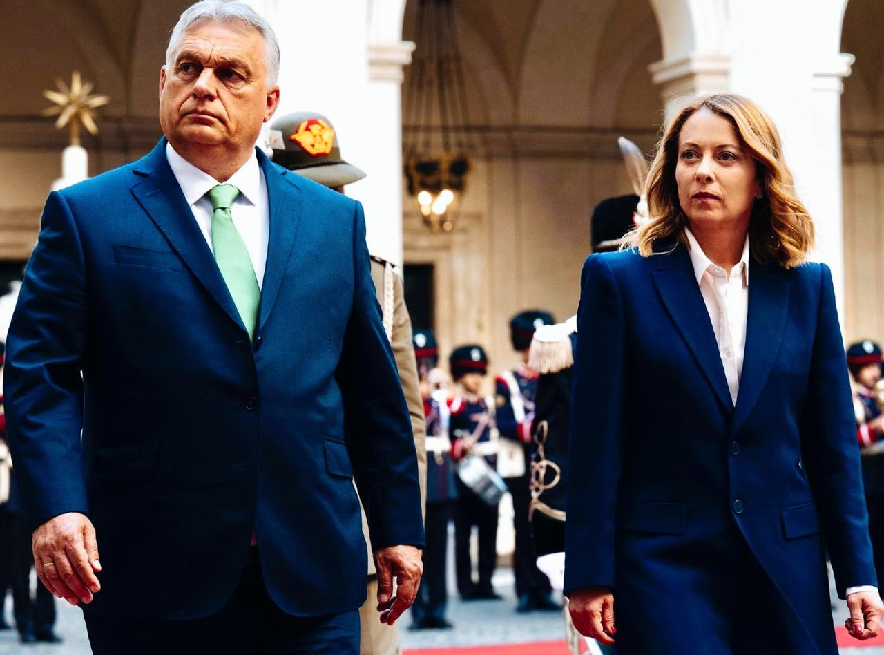 梅洛尼与马克龙走一起时,和与欧尔班走一起时,看向对方的眼神明显不一样啊! 梅洛尼