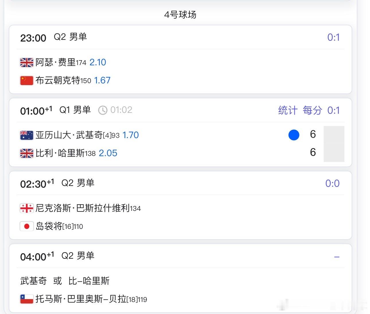 4号球场23:00布云朝克特🇨🇳vs费里🇬🇧