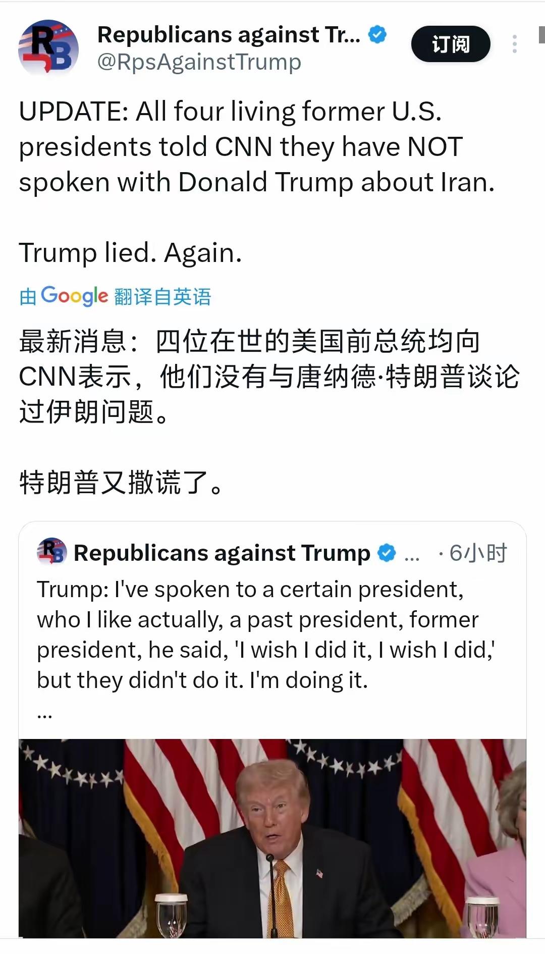 CNN忘了特朗普也是前总统。3月17日,特朗普说了一段细想之后很惊人的话:“我跟
