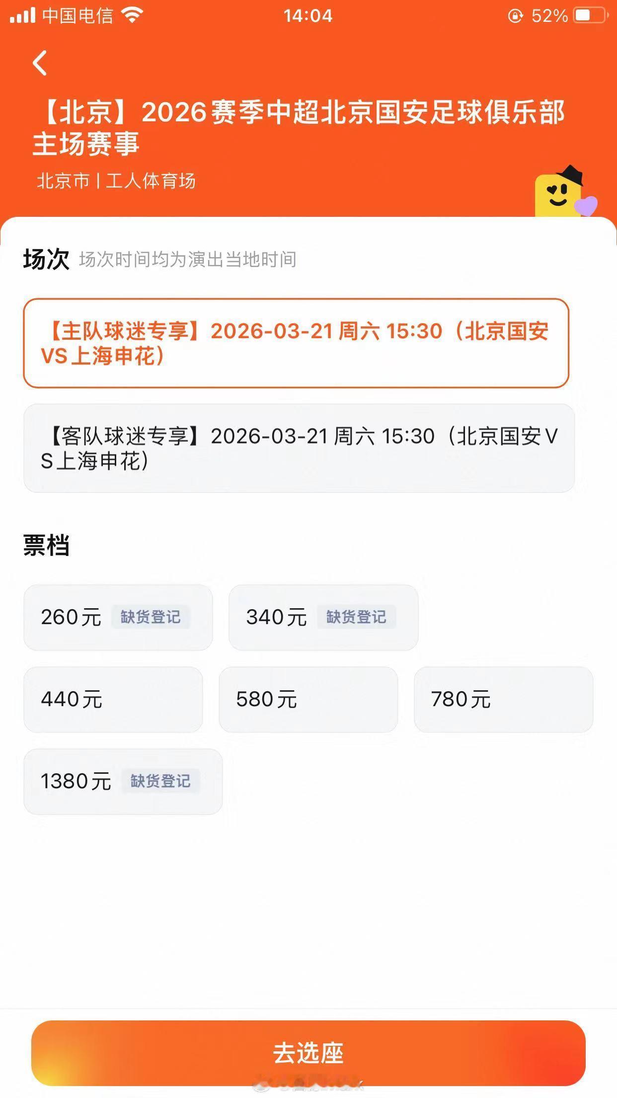 中超联赛 京沪大战开售4个小时,国安在大麦又卖出了一些票,票星球的票还有340元的,今年票星球又有国安的票务了,是不是有些球迷还不知道。