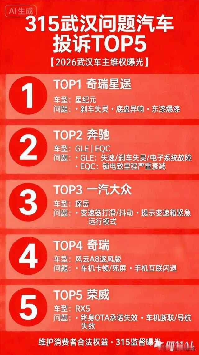 武汉315又把奇瑞车型给点名了。去年是艾瑞泽8,今年是星途星纪元和风云A8。有问题不怕,谁还没个小毛病呢?就怕拖着不解决!车企推新款时,是不是也该研究研究老款的问题?口碑是慢慢积累的,可不是靠一时的高销量。 星途星纪元 奇瑞算不算国产车