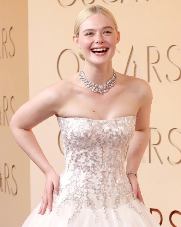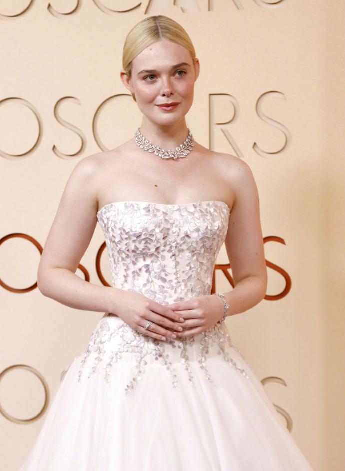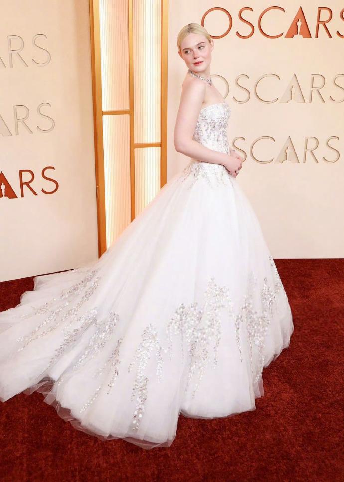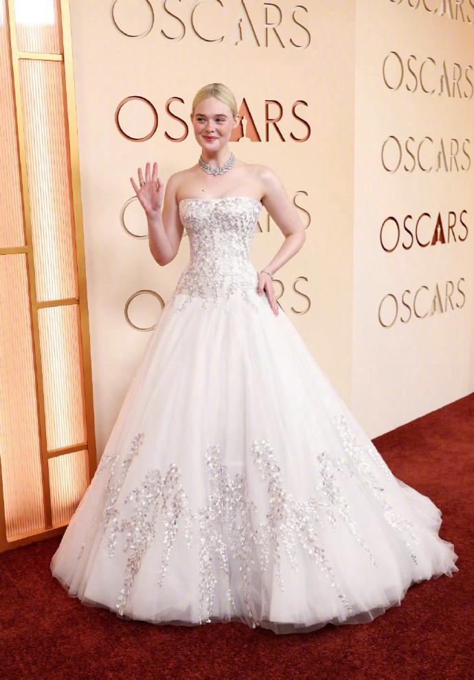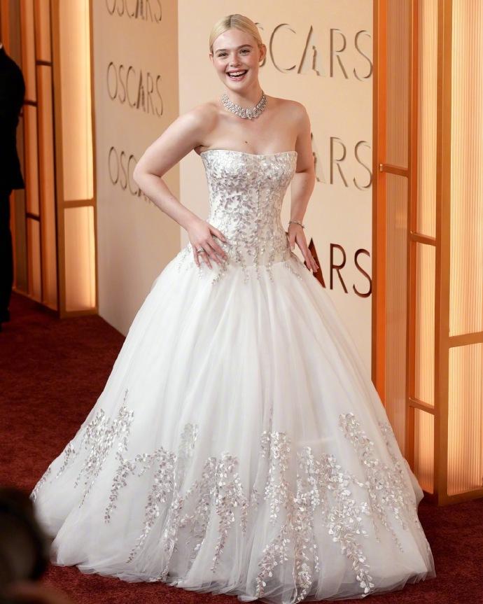 艾丽·范宁(Elle Fanning)出席奥斯卡颁奖典礼,穿着公主裙,金发碧眼,真是比城堡里的公主更像公主了! 3月16日,艾丽·范宁凭借《Sentimental Value》中的最佳女配角提名,踏上奥斯卡颁奖典礼,这也是她影视生涯中第一次获得奥斯卡提名。 年仅27岁的她穿着一身洁白的蓬蓬公主裙,金发扎成丸子头,佩戴奢华的钻石珠宝,光彩照人,真是童话中的公主具象化了。
