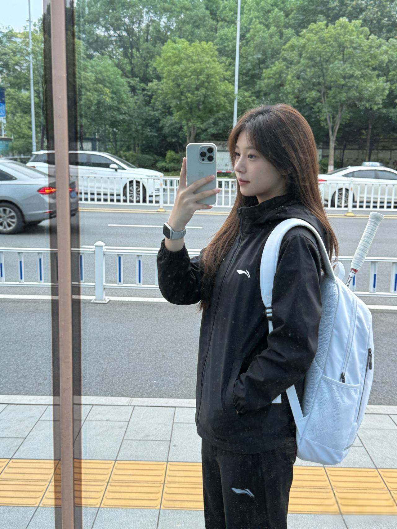 秦海璐这丸子头也太减龄了吧!✨高扎丸子头搭配叠穿T恤,休闲又时髦,笑起来温柔又