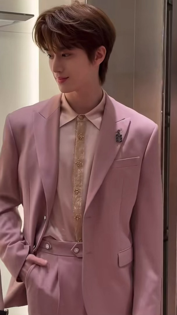 粉西装男神轻点帅!张康乐粉色西装造型路透 张康乐粉西装造型