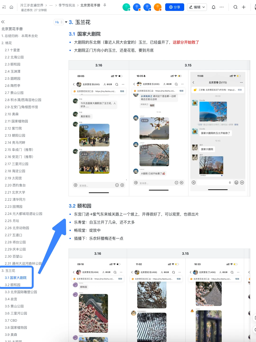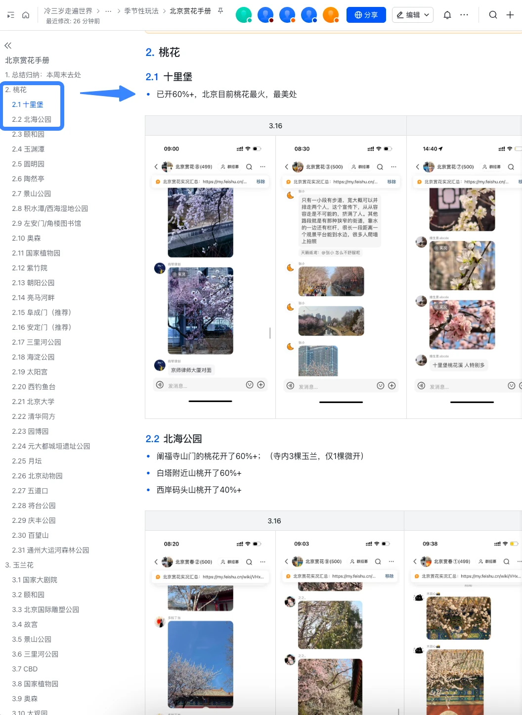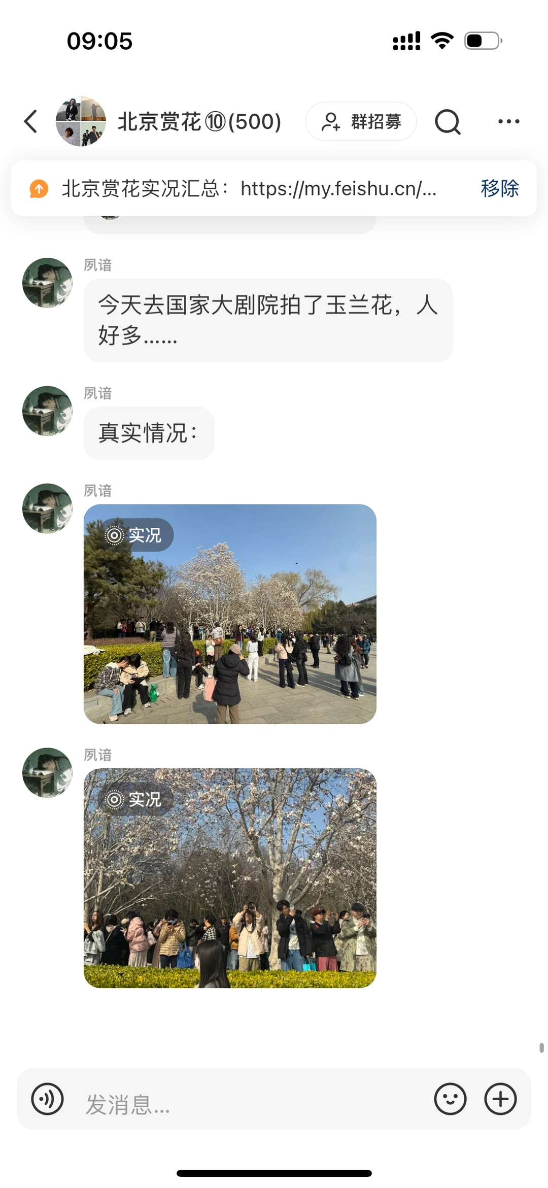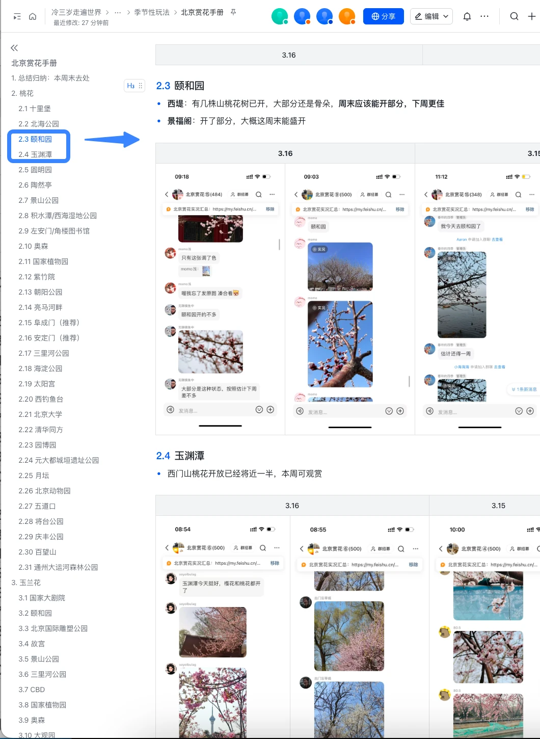 包括群聊天反馈,及部分花开照片,哪个地方开了,机位,打卡点等