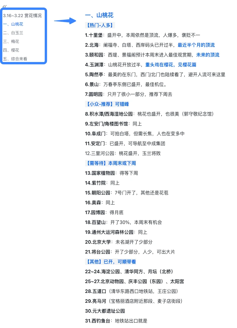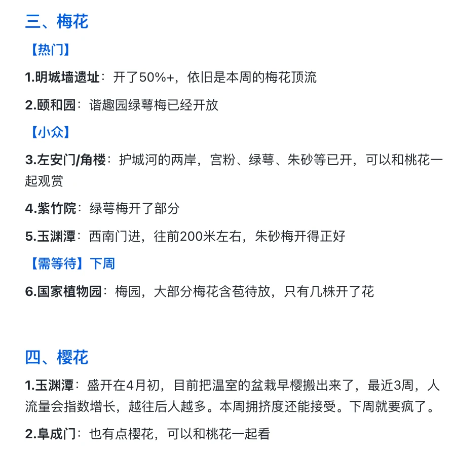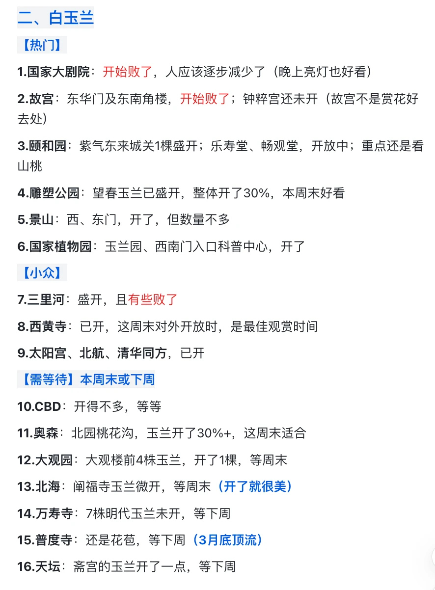 把目前北京花开情况,及最近一周值得去的地方整理出来了
