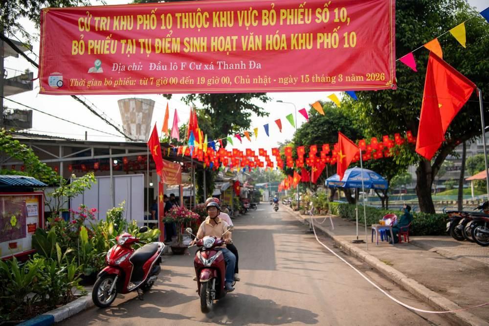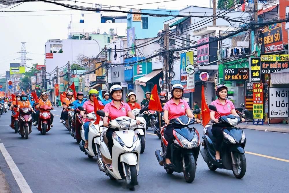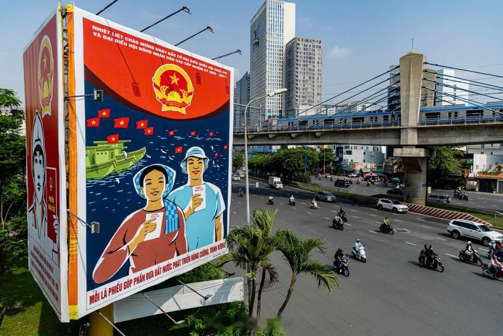 越南这个配色,还真挺喜庆和热闹的,投票也要电驴出街。