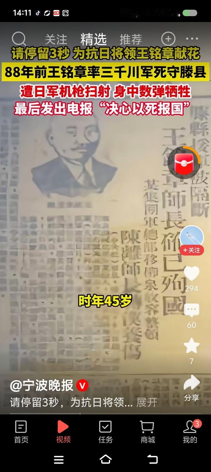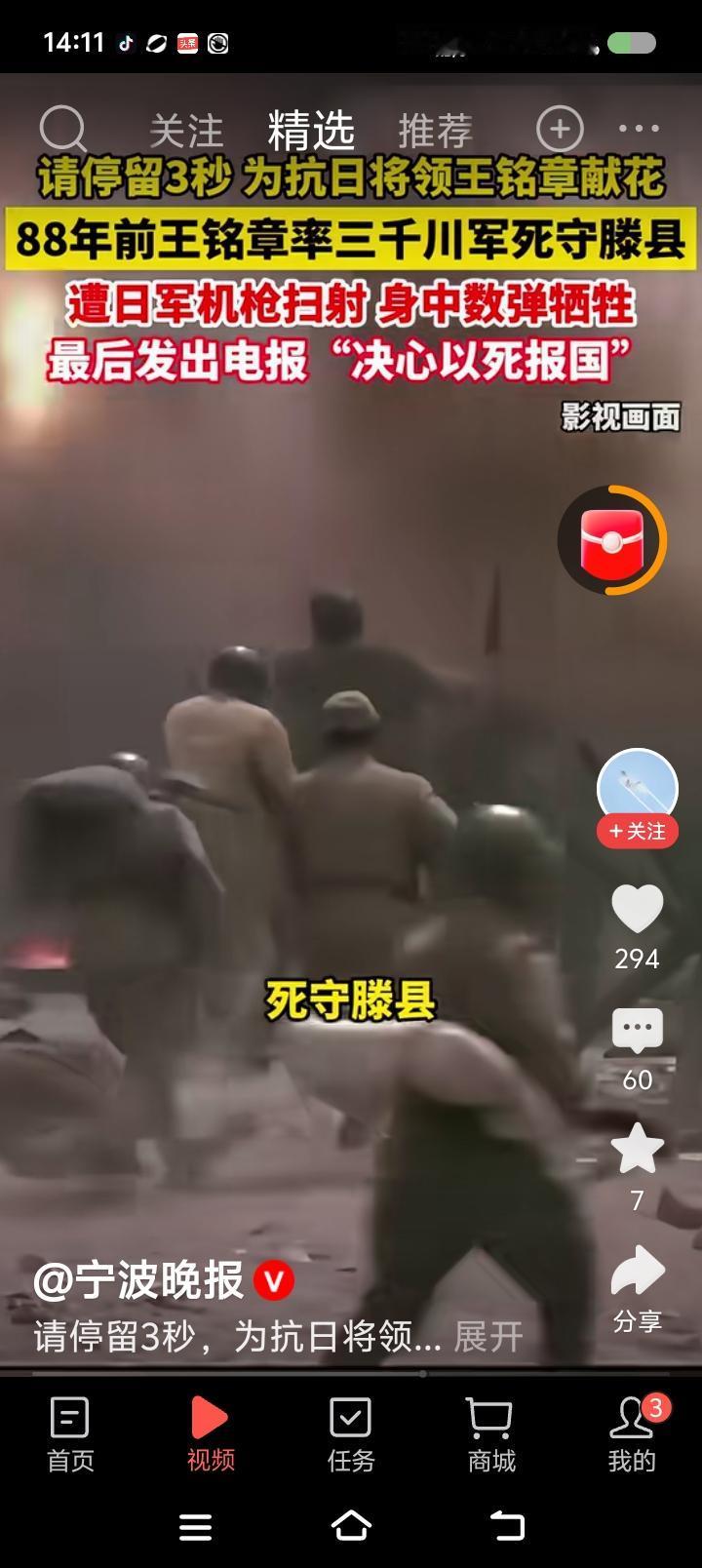 为抗日将领王铭章停留三秒—— 据报道,今天是抗日将领王铭章逝世88年纪念日。
