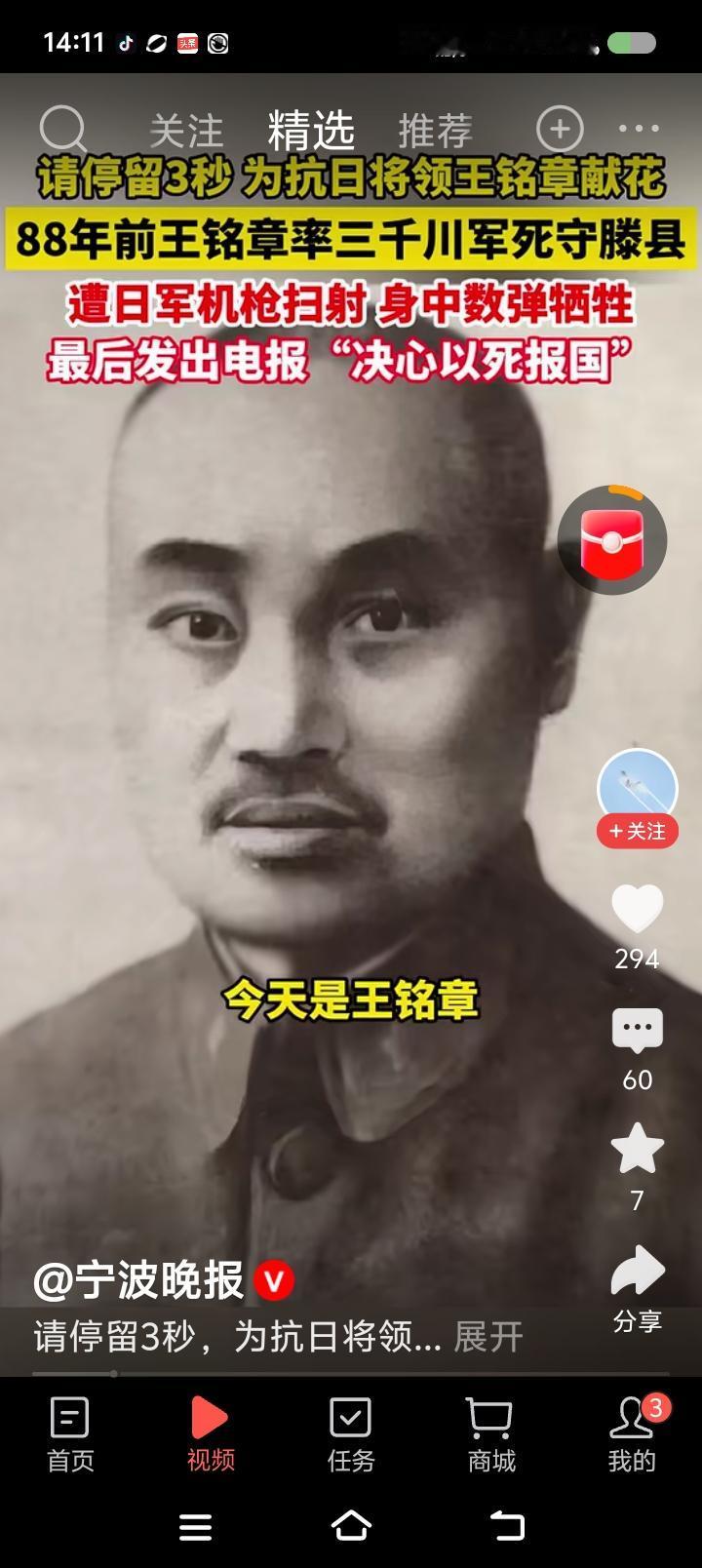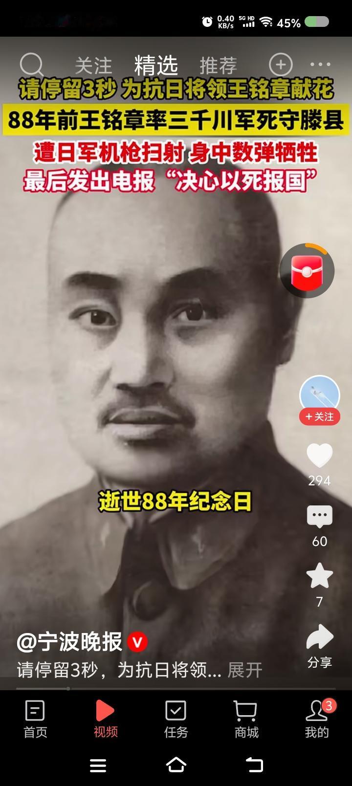 为抗日将领王铭章停留三秒—— 据报道,今天是抗日将领王铭章逝世88年纪念日。 学习笔记: 1938年3月14日至3月18日,山东滕县保卫战打响,此为台儿庄战役的序幕。国民革命军第41军122师师长王铭章率3000余人死守滕县,与数万有飞机、重炮、坦克的日寇作战。激战四昼夜,伤亡惨重,使敌付出巨大代价。3月17日王铭章遭敌机枪扫射,壮烈殉国。余部继续抵抗。3月18日,县城沦陷。李宗仁评价:“若无滕县之苦守,焉有台儿庄之大捷?” “决心死拼,以报国家!”这是王铭章的临终电令。 问问今日中国国民党,你们媚美媚日,与民进党等“台du”势力沆瀣一气,甘当帝国主义帮凶,国格人格何在?人性何在?百年后你们有何面目见抗日军民?有何面目见中山先生?有何面目拜妈祖拜关公?