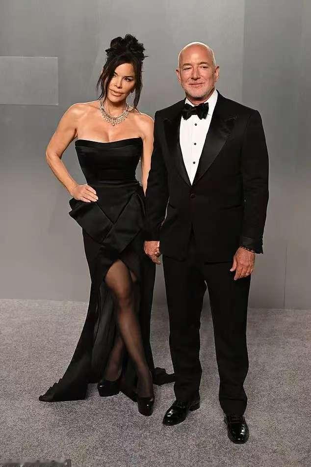贝佐斯和妻子桑切斯携手出席奥斯卡名利场派对,当这对新婚夫妻在红毯上尽情摆拍的时候,却发生了一件有趣的事情! 3月15日,贝佐斯夫妇在出席了奥斯卡颁奖礼后,自然不会缺席当晚的名利场派对。 和颁奖礼上一样,桑切斯再次选择了一袭黑色的古董裙,一袭John Galliano 1995春夏系列的作品,抹胸裹身裙,尽显曼妙身姿。 这对豪门夫妇在红毯上尽情凹着造型摆拍,镁光灯围着他们闪个不停。 但是有趣的一幕发生了,当妮可基德曼直直从他俩身后走过去的时刻,闪烁的镁光灯也跟着走了。 妮可基德曼不愧是女神,女神碰上阔太,妮可基德曼那回眸的小眼神简直了。