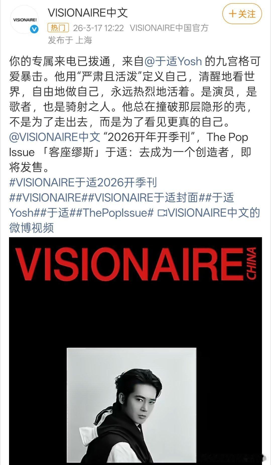 VISIONAIRE于适2026开季刊于适VISIONAIRE中文版的开季刊封面预告🈶,3月开季的第二本杂志来了~ visionaire于适2026开季刊