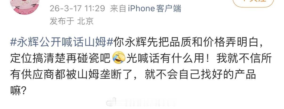 但你们仔细想想就明白蹊跷了,山姆把作业写好了,永辉想抄作业。山姆有很多东西,是特供款,他们自己参与了研发,相当于山姆和品牌方的联名。现在研发好了,永辉的意思是:我也要,伸手给我,你不给我,你就是垄断。