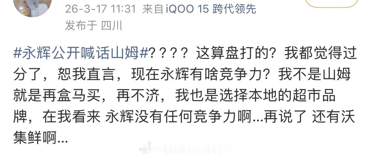 永辉给山姆写信喊话,这条新闻的评论区都是讥讽永辉的,还提到了胖东来。
