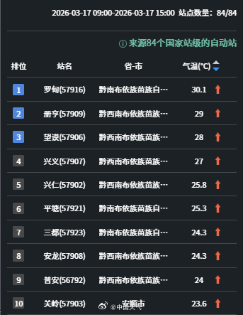 #贵州同省南北温差超20度#【贵州的气温对比度拉满了】#贵州北部穿棉袄南部穿短袖# 今天贵州北部多地最高气温不足10℃,而南部有些地方却超过25℃,最热的罗甸达到30.1℃,比同省北部多地暖出20℃以上。(中国天气)