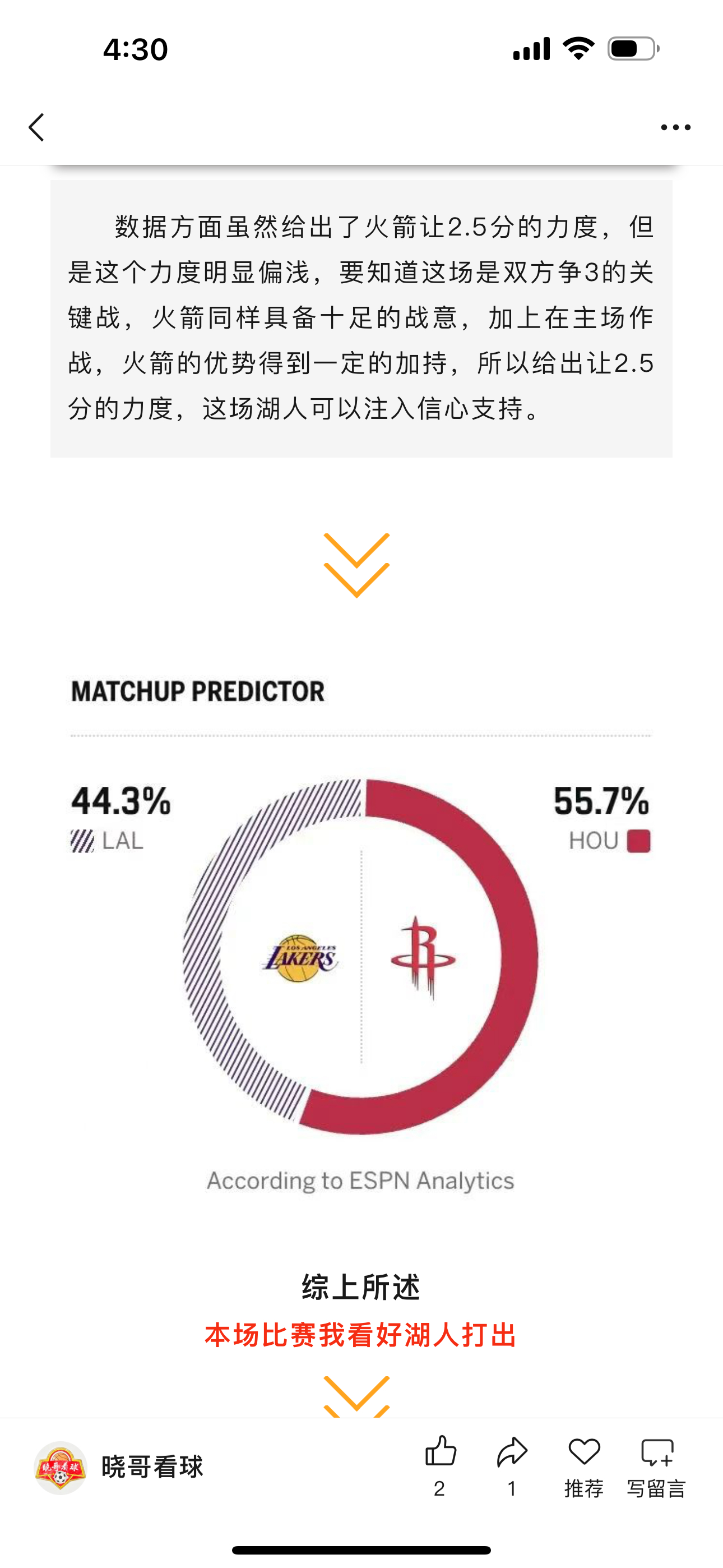 昨日公推NBA篮球湖人方向收获好评成绩,这场比赛我在赛前分析就提到过这场申京不上,对于火箭来说损失很大,他们在进攻端本身就缺乏手段,过于依赖球星单打始终是弊端,而湖人阵容相对齐整,加之最近湖人逐渐找到赢球感觉,这场最终获得好评也是合理结果。NBA洛杉矶湖人体育赛事体彩篮球预测