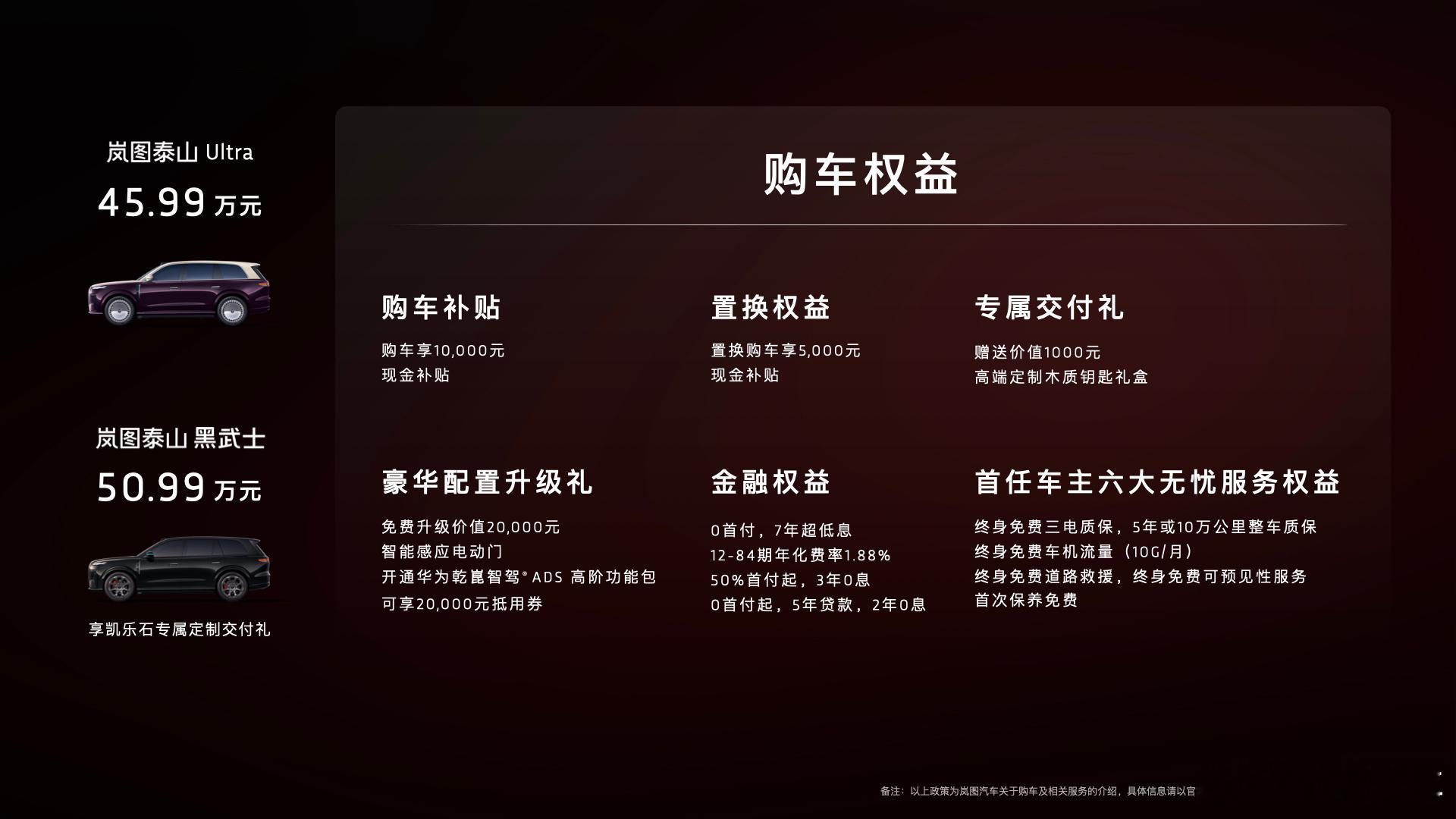 • 日常更省心:自动泊车、领航辅助更精准,长途不累、拥堵不慌,9系旗舰SUV里智驾实力拉满。896线激光雷达全球首秀看岚图泰山全新一代896线激光雷达旗舰SUV