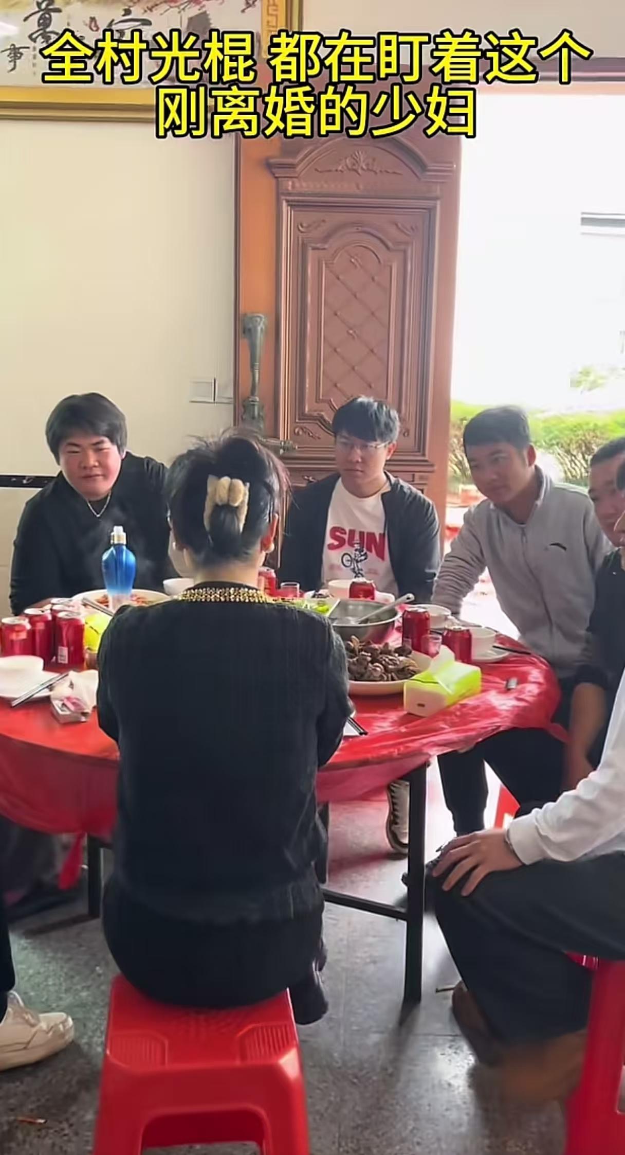 这个视频真的让人看破防了! 村子有个刚离婚的少妇, 全村的光棍坐在一个桌子上,全部都盯着她。 很多人都以为夸张,但是有个很残忍的事实是,农村的大龄剩男,真的很难娶到老婆,有些二婚的女人彩礼甚至比头婚的还高,通常是二十多万起。 最后还有一个段子: 女生:刚人流完。 媒人:女生直系亲属刚走,正是需要人陪伴的时候。