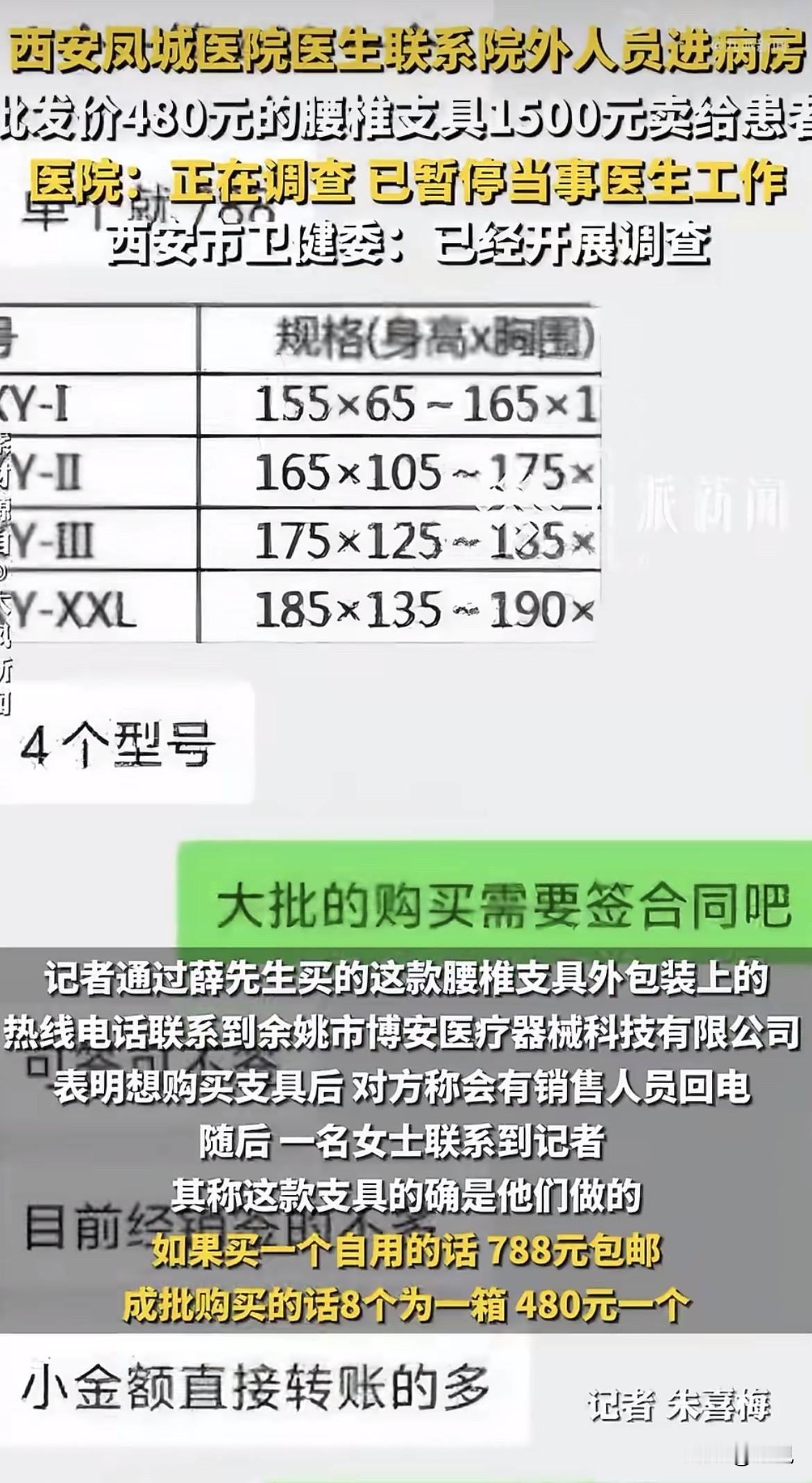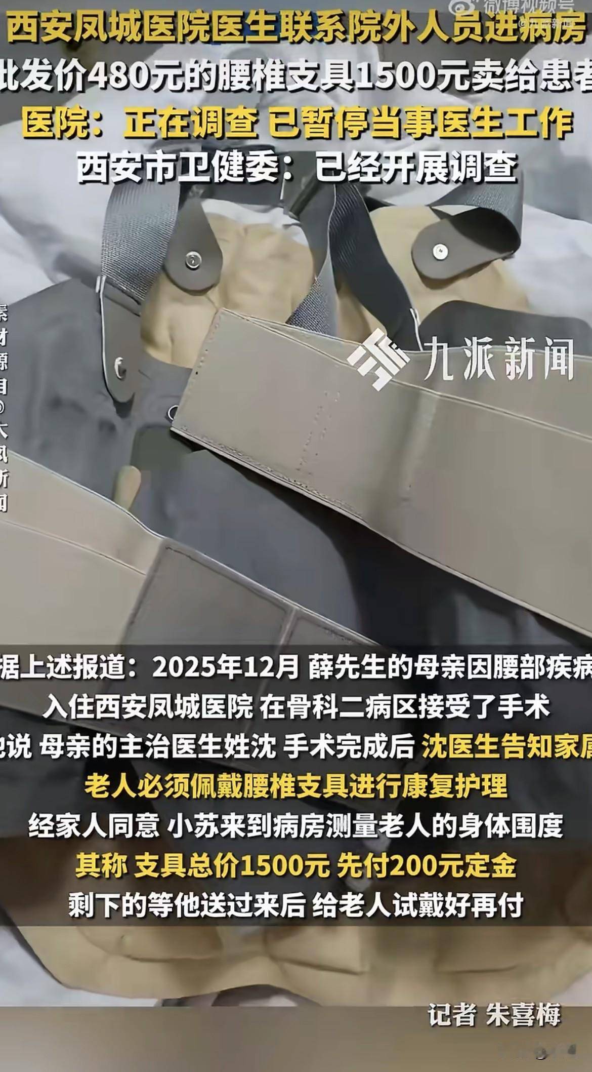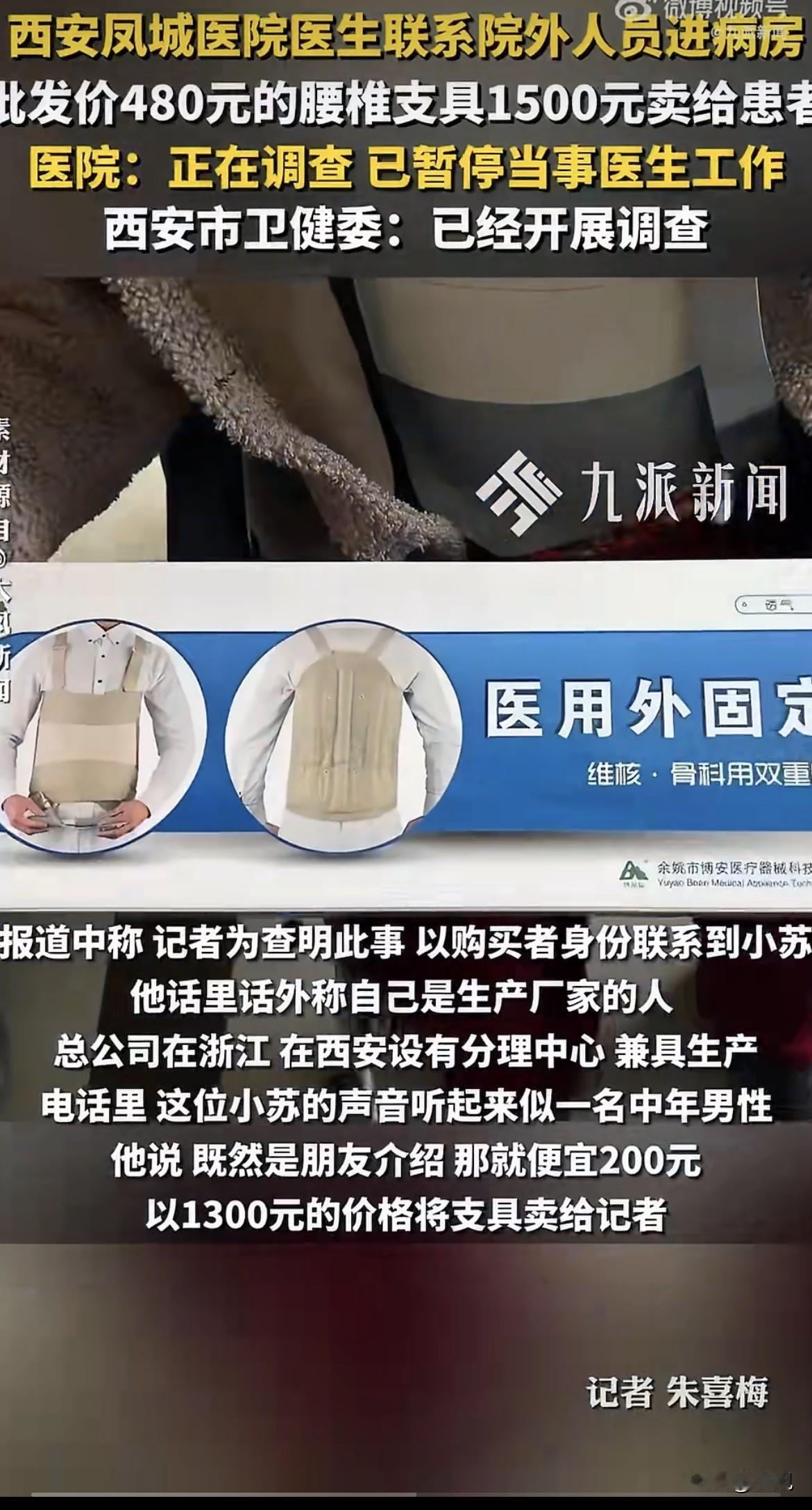 薛先生那天站在病房里,拿着手机扫了那个陌生男人的微信二维码。付完200块定金,他看了一眼对方的微信头像——一个再普通不过的个人号,看不出是哪个公司的,也没有营业执照头像。 这个细节他后来反复想。如果是正规厂家,为什么不走医院公账。如果是医院合作的供应商,为什么不穿工作服不进收费系统。一个电话就能把人叫进病房,这个通道是怎么打开的。 支具送到那天,薛先生把包装盒翻来覆去看了几遍。余姚市博安医疗器械科技有限公司,他记下这个厂名。回家上网一搜,同款样子的一百多到两百多不等。他顺着包装盒上的电话打过去,接电话的是个女的,问买一个多少钱。对方说单买788,成箱拿八个,一个480。 薛先生当时就愣住了。480到1500,中间这一千多块钱,到底去了谁的口袋。 那个进病房量尺寸的人,是怎么进来的。西安凤城医院骨科二病区的病房,不是什么人都能随便进的。没人拦,没人问,直接走到患者床边量尺寸收钱。沈医生一个电话,人就到了。 厂家的人跟记者说得很直白,他们一般不直接卖个人,主要是供经销商和医院。至于经销商转手卖多少钱,他们管不着。这话换个说法就是,出厂价480的东西,到了病房里卖1500,中间的差价,是留给各个环节的。 这种事其实不是第一次曝出来。2025年国家医保局通报过一个案子,河北一家三甲医院的心内科,用了七年的支架和球囊,代理商给副院长和科主任送钱,支架每条回扣5000块,球囊每条回扣800到1000块,七年下来光是回扣就送了1400多万。那家代理商注册了四家公司,用完一家注销一家,送钱用牛皮纸袋装,两三个月送一次。 回扣这玩意儿,不是一个人拿的。唐山那家医院的胸外科,从2017年到2024年,七年时间收了339万回扣,从科室主任到普通医生,按比例分钱,形成一条完整的利益链。科室内部还专门开会制定方案,谁对接医药代表,谁监督执行,谁负责分钱,分工明确。药品回扣按比例算,手术器械回扣单独走账,部分钱用于科室公务支出,剩下的按人头分。 西安凤城医院这事,虽然只是1500块的支具,但模式看起来眼熟。医生推荐,外面的人进来量尺寸,钱转给个人,没有票据。这套流程要是跑顺了,今天能卖支具,明天就能卖钢板,后天就能卖支架。 薛先生现在最想知道的是,那个收他1500块的人,跟沈医生什么关系。还有,沈医生一个人说了算,还是科室里大家都这么干。 医院的反应很快,媒体报道当天就成立调查组,暂停沈医生工作。但这种让外面人进病房推销的模式,不是一天两天能形成的。经销商想进病房,得有人放行。放行一次两次可以算个人行为,放行久了就是门道。 有医院的人私下说,医生推荐医疗器械,有时候是真觉得这东西好用,有时候是跟经销商熟,有时候就是单纯拿回扣。外人分不清楚,患者更分不清楚。医生说买,家属就买。医生说扫码,家属就扫。等回到家越想越不对劲,再想找人说理,已经晚了。 还有一种情况是医生自己带器械进手术室。有媒体报道过,很多医院对医生自带植入性医疗器械管得很松,只做简单的资格审查,甚至不审,出了问题追溯源头都追溯不到。那些器械是谁的,从哪进的,多少钱买的,全凭医生一张嘴。 厂家480,病房1500。中间那1020块钱,买的到底是支具,还是医生的推荐。 薛先生说他最后悔的是当时没多问几句。那个男的进病房的时候,就该问你是哪个公司的,你跟医生什么关系,你的公司注册地在哪,为什么微信转账不走医院公账。但那时候母亲刚做完手术躺在床上,一家人都指望医生,谁敢问。 这种心态,恐怕是很多患者家属的写照。人在医院,命在医生手里,医生说什么就是什么。就算觉得不对劲,也只能先照办,回家再琢磨。 琢磨出来又能怎样。薛先生把这事捅到网上,医院说在调查,沈医生停职了。但那个收钱的人是谁,钱退不退,以后还有没有外面人进病房,没人给个准话。 大家如果在医院碰到这种事,会当场问清楚吗。 来源:大风新闻 九派新闻