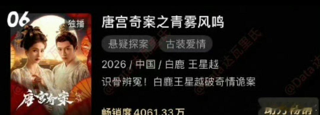 白鹿抗剧能力牛唐宫奇案长尾牛 已经升到第六了