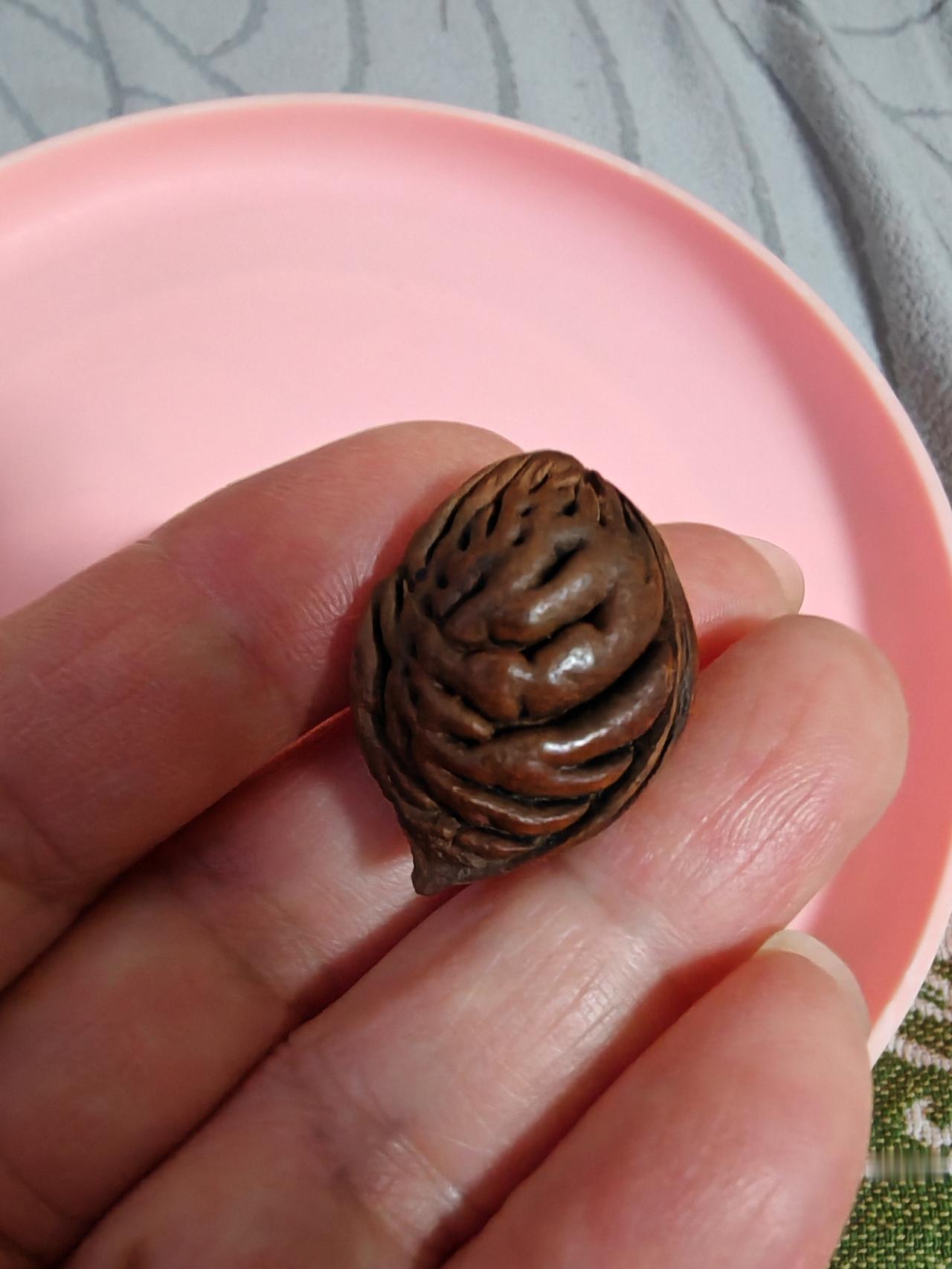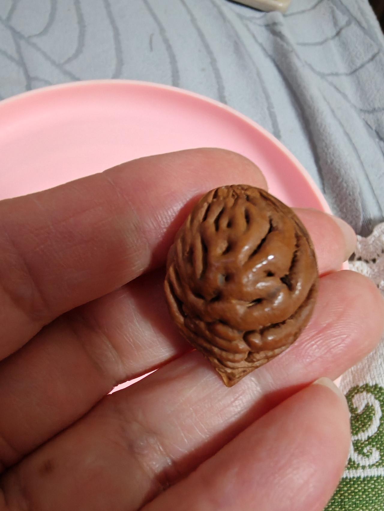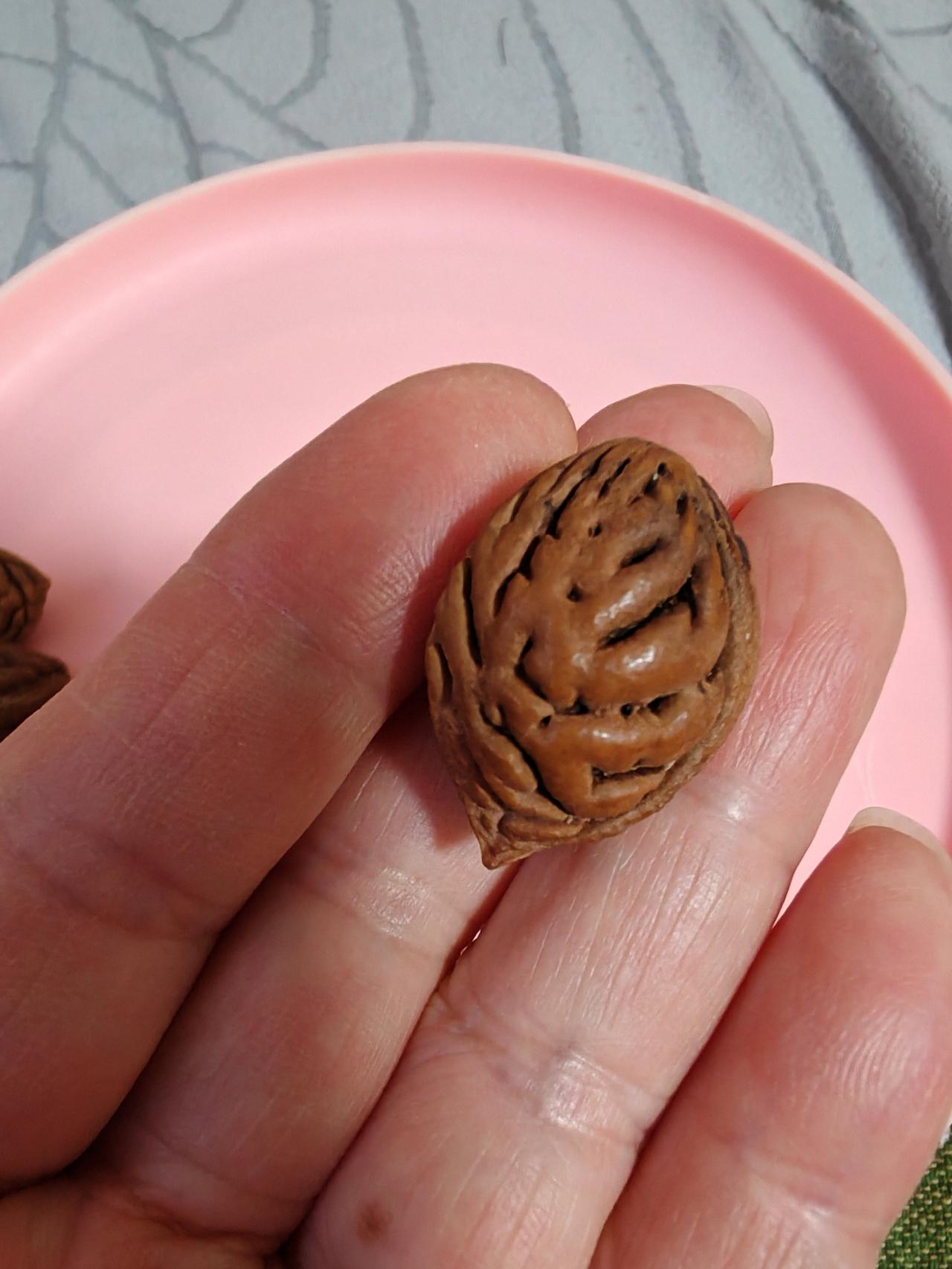 花纹特别好看! 这几枚桃核是我上周六游花果山时捡的。 在花果山上休息时发现身边有两棵桃树,忍不住想:花果山的桃核是什么样了呢? 现在这个时候桃花还没开呢,只好到桃树下搜寻一下去年的落地核。 真被我找到几颗,花纹真的很漂亮。 清理干净发出来给朋友们看看。 我在想,为了几颗美丽的桃核,等秋天桃子成熟的季节,是不是再到花果山去游玩一次,摘几颗桃子回来呢!