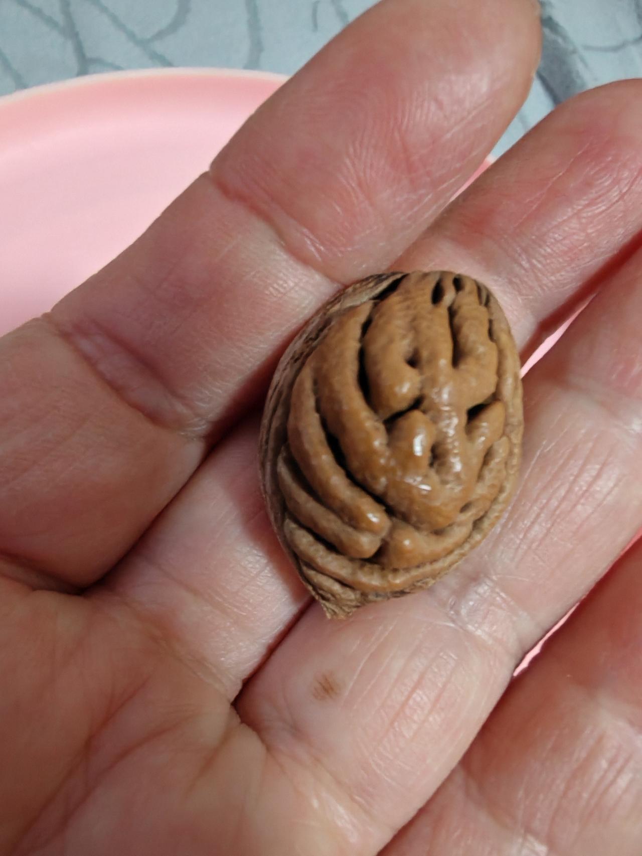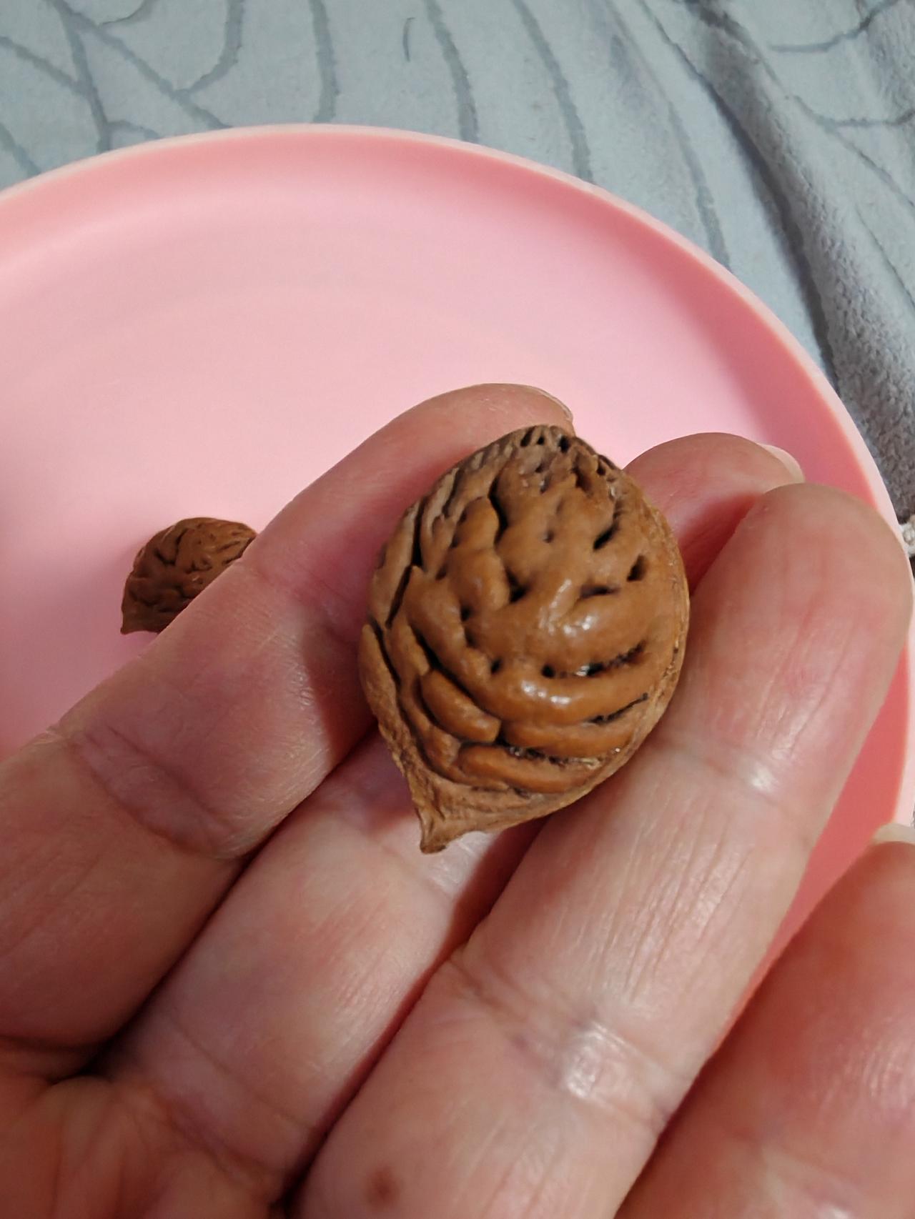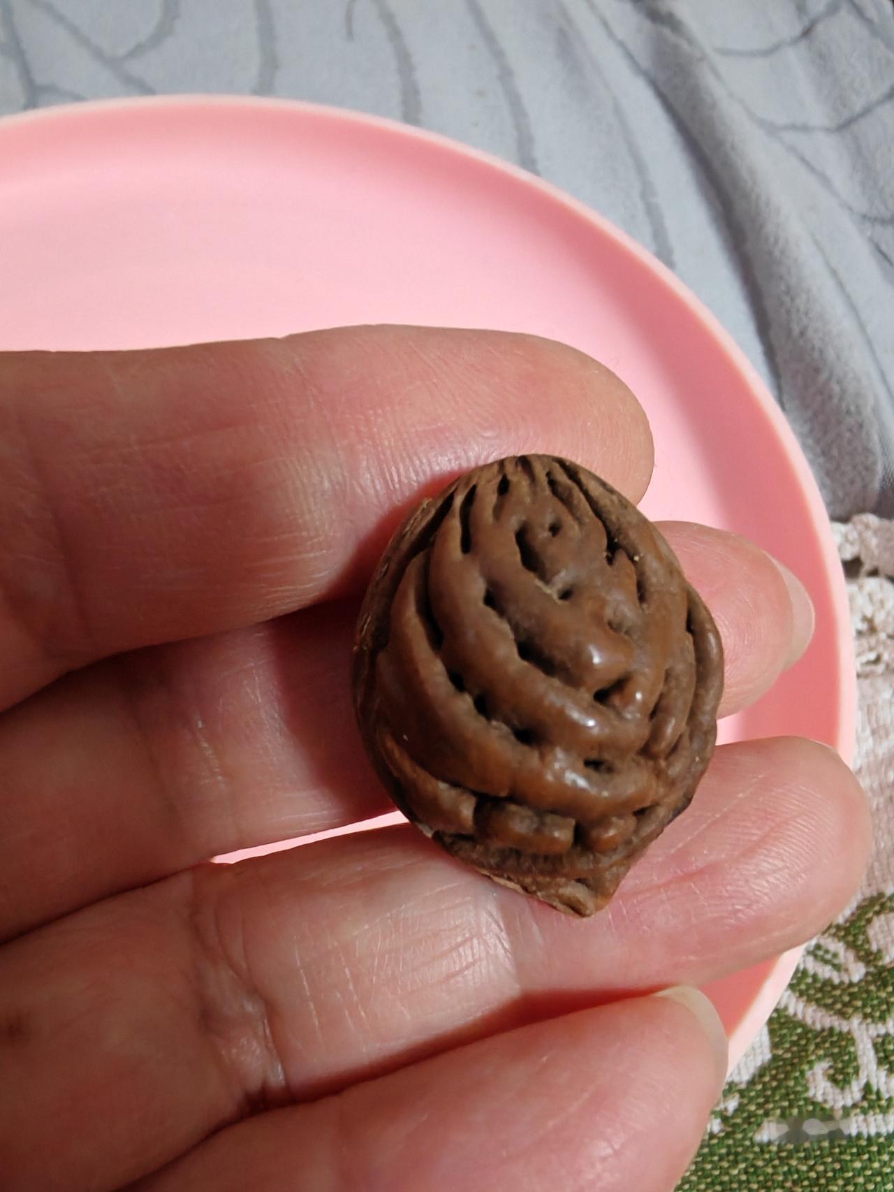 花纹特别好看! 这几枚桃核是我上周六游花果山时捡的。 在花果山上休息时发现身边有两棵桃树,忍不住想:花果山的桃核是什么样了呢? 现在这个时候桃花还没开呢,只好到桃树下搜寻一下去年的落地核。 真被我找到几颗,花纹真的很漂亮。 清理干净发出来给朋友们看看。 我在想,为了几颗美丽的桃核,等秋天桃子成熟的季节,是不是再到花果山去游玩一次,摘几颗桃子回来呢!