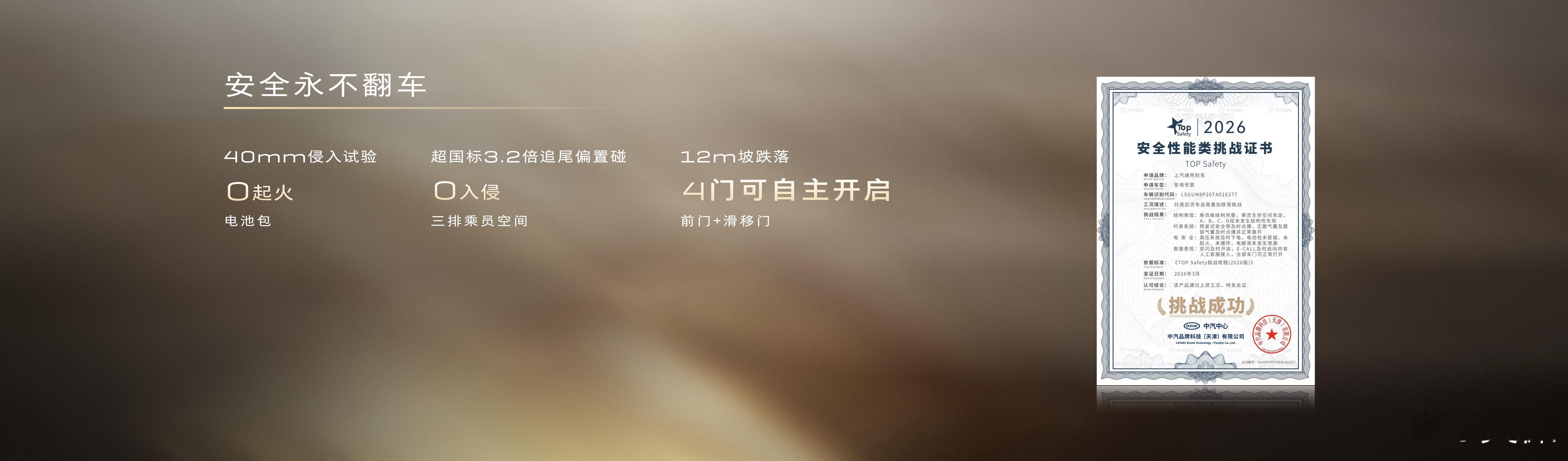 1、官方做了一个MPV首个托底+货车追尾+跌落斜坡的连续安全测试。结论:这台车很难“杀”。(看图7-12)