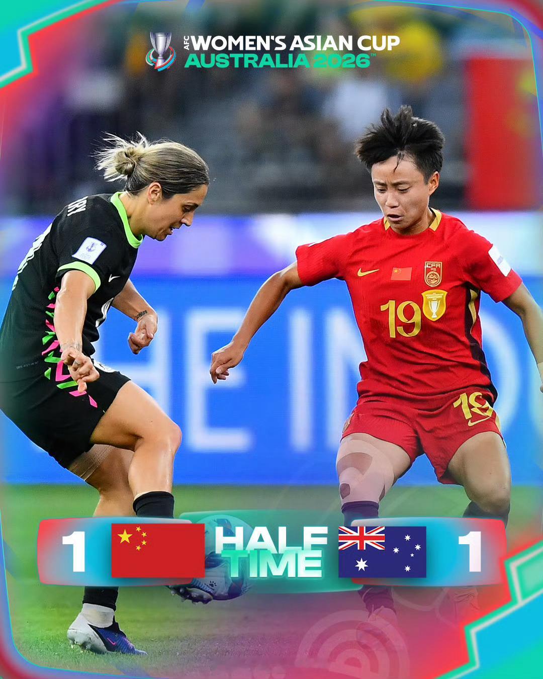 中国女足半场1比1澳大利亚女足