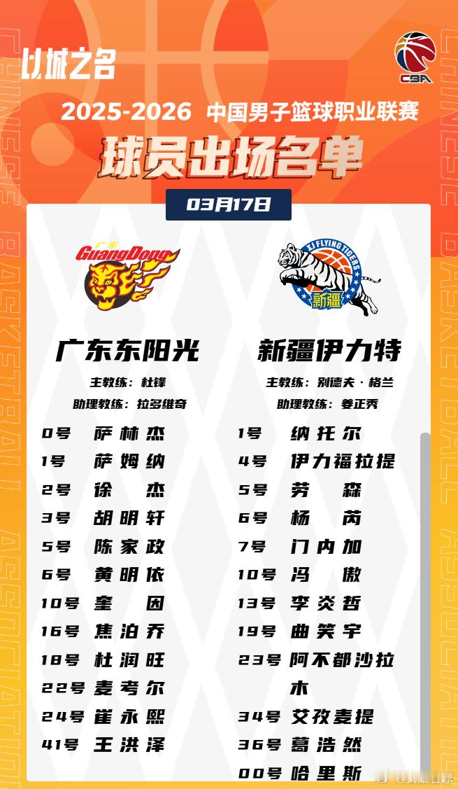 广东队大名单出炉,黄明依替换张皓嘉进入轮换阵容,王少杰依然缺席,又是对阵新疆了,