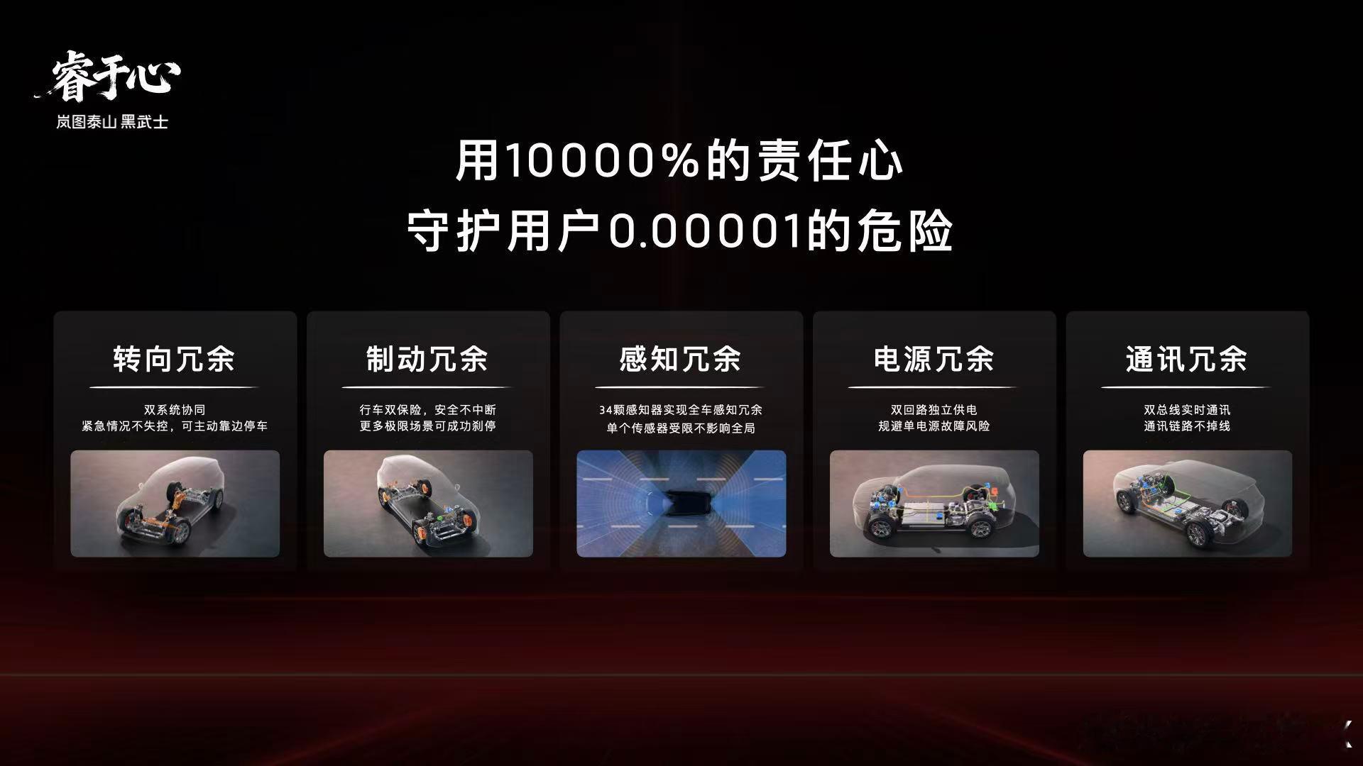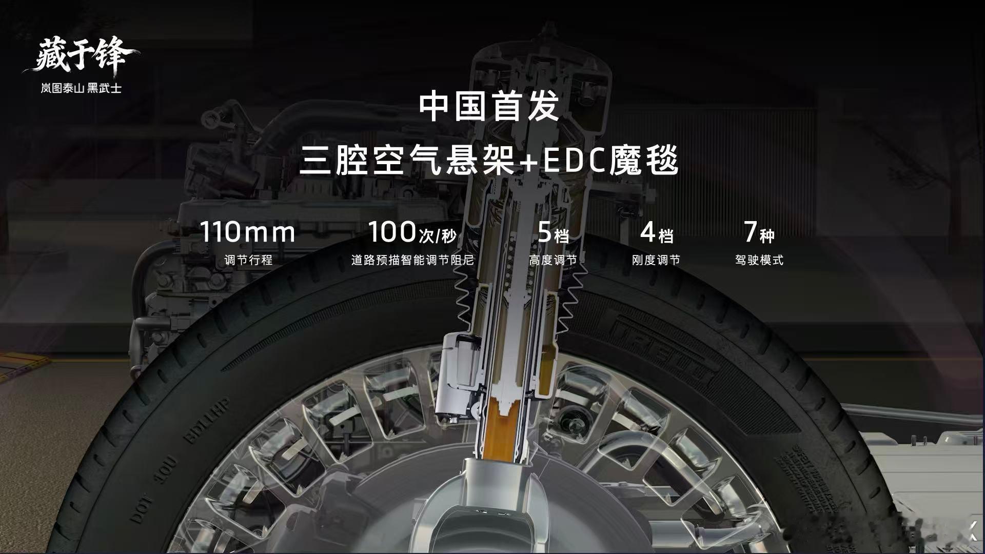 泰山黑武士版秉持“天地共雅”设计哲学,以玄墨裹身如镜鉴万象,以朱砂点睛藏锋芒于从容,将山水意境、包容万象等东方美学元素融入其中,同时以“藏锋”气韵诠释中式豪华的内敛之美。896线激光雷达全球首秀看岚图泰山