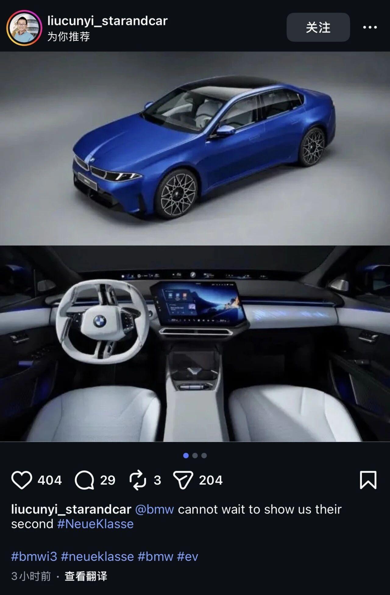全新宝马新世代i3海外提前泄露,而且还是官方账号,像是设计解读,不像是AI,咱暂