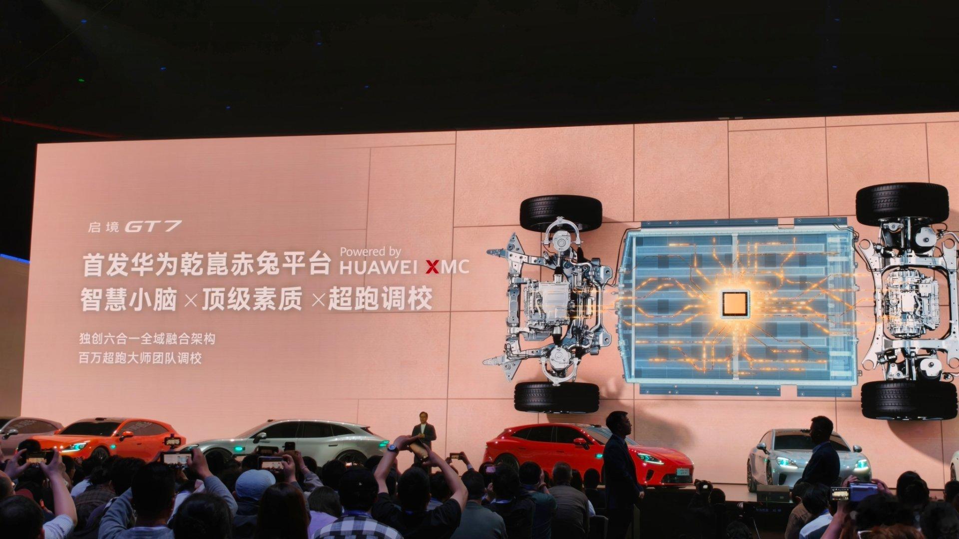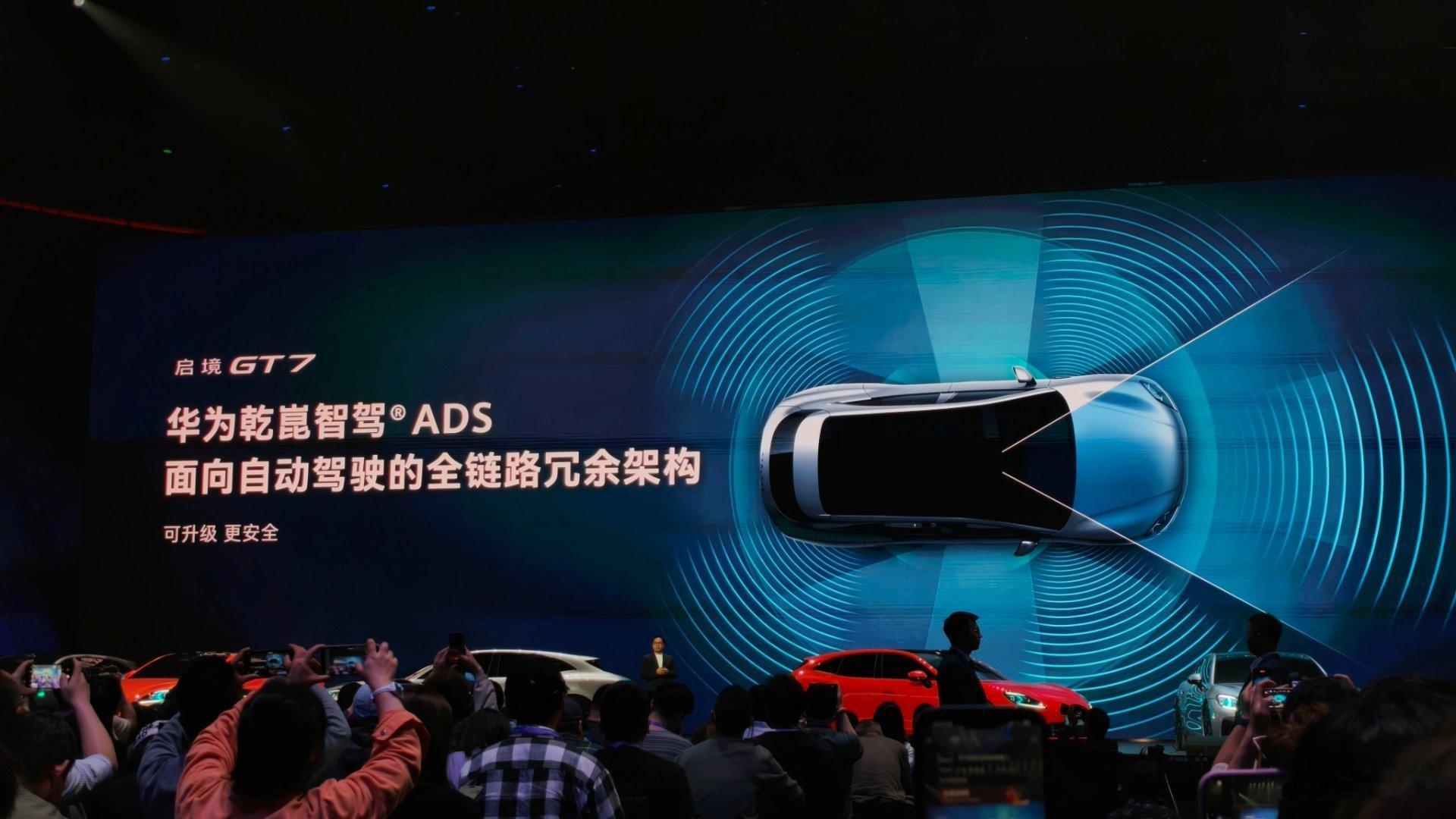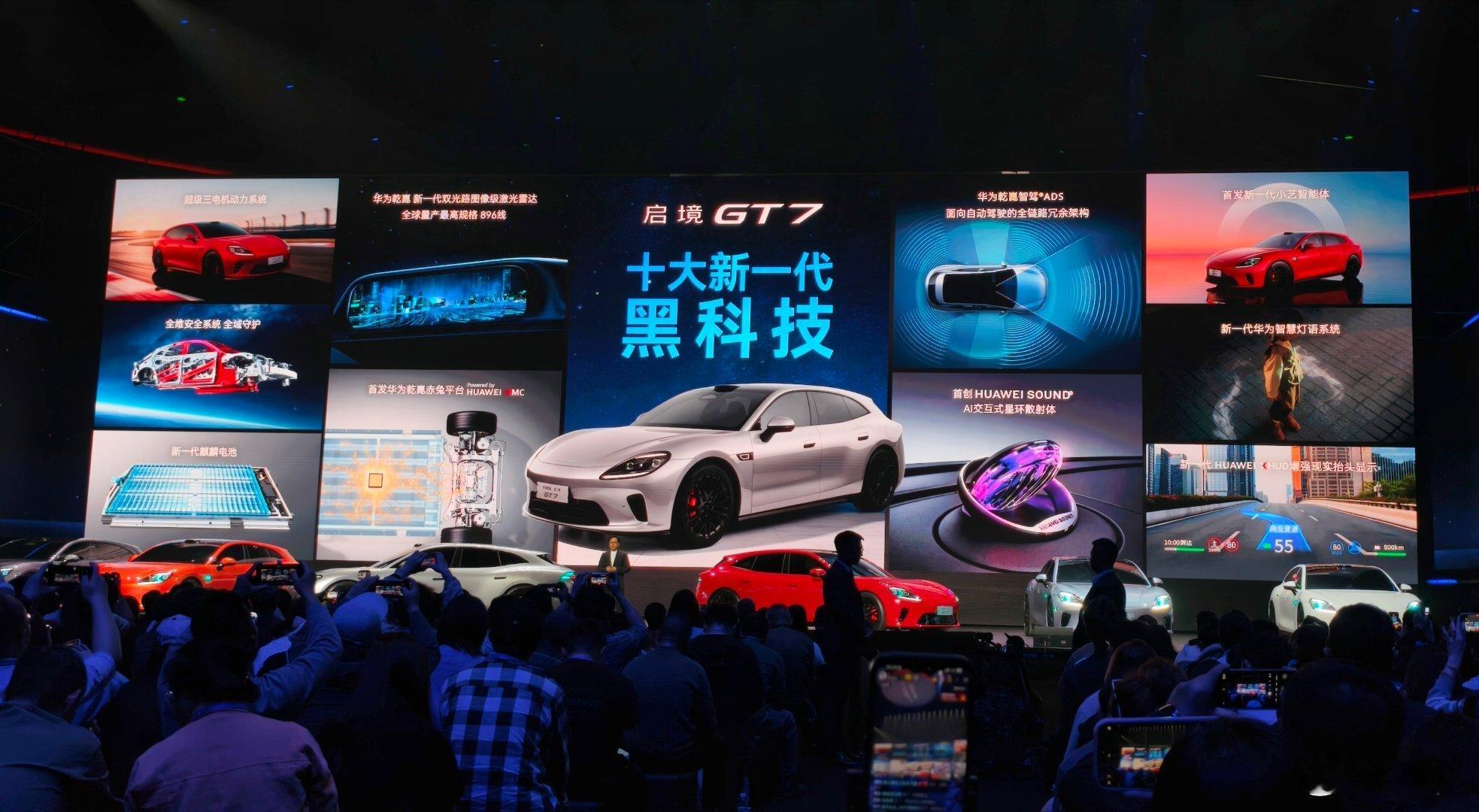 启境毕竟是亲生的品牌所以华为最新的科技都会下放启境GT7会拥有最新的896线激光雷达这套华为乾崑ADS有自动驾驶冗余的架构融合鸿蒙系统和ADS的新一代智能体华为新款抬头显示、华为新交互体甚至是最新的,支持6C的麒麟电池都会通通出现在这辆启境GT7身上这是一套真正的华为全家桶!