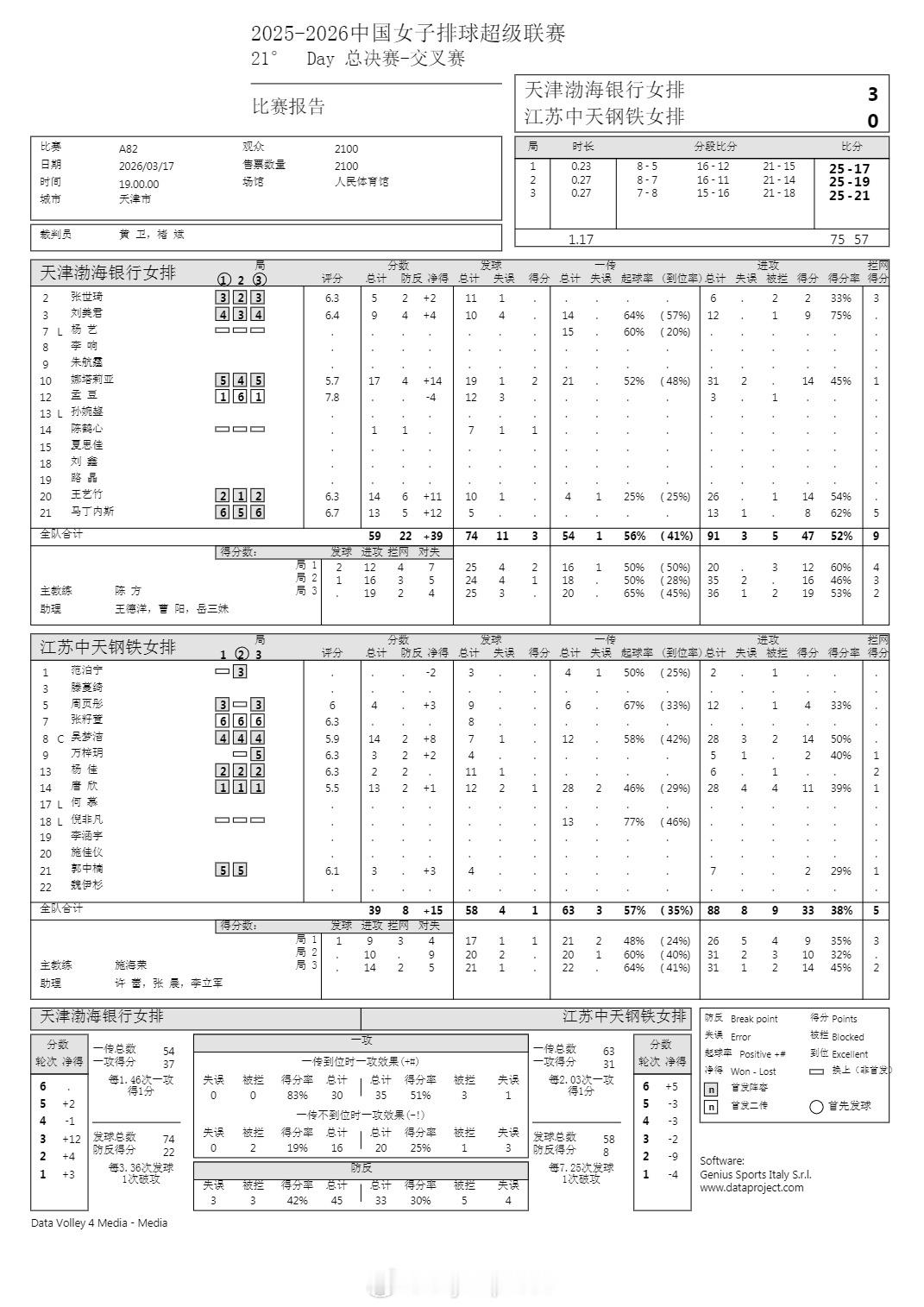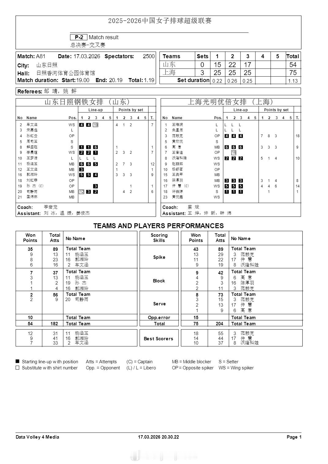 排超联赛 3月17日,排超女排联赛半决赛首回合技术统计。