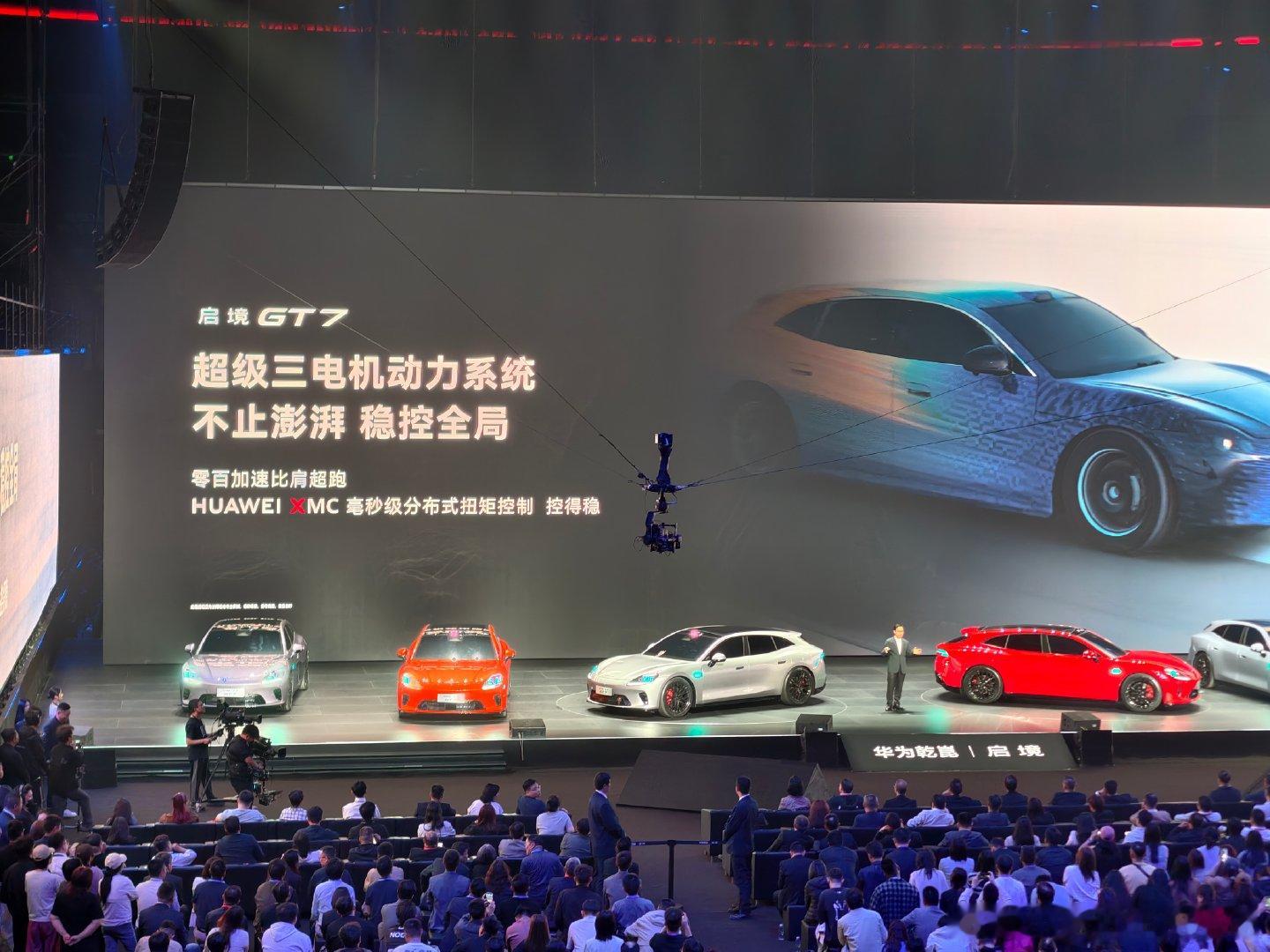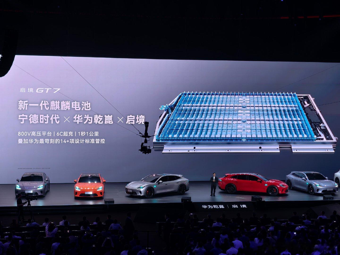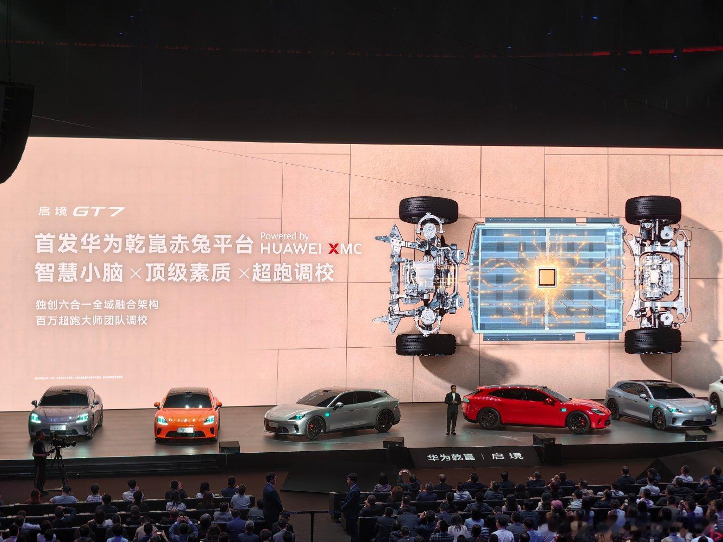 启境GT7底盘基于华为乾崑赤兔平台,有闭式双腔空悬,有三电机动力,有宁德时代的新一代麒麟电池,一共十大黑科技,这次给启境真的不少杀手锏了
