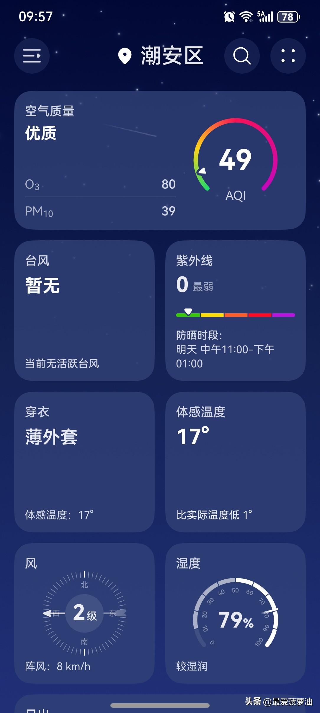 弱冷空气“摸鱼”,广东气温总体维持或小幅波动! 17日我省晴到多云气温继续回升,18~20日,我省多云间阴天,部分市县有小雨,气温总体维持或小幅波动。另外,18~19日有弱冷空气逼近南岭北侧。 今天(17日),潮州喜提一个多云天气,气温16~25℃,此刻气温18℃,体感温度17℃。 今天虽然是多云天气,但依然能见到阳光。气温也给力,全天最高气温喜提℃,暖得有点不像样,已经开始感觉到热了。特别是中午时分,温度不断上升,夏天的既视感扑面而来啊! 这两天气温一直在线,白天穿短袖的人越来越多了,就连五六岁的孩子都已经穿起夏装……我一度以为是自己眼花看错了,再三确认,是真的! 今年的夏天提前这么早来吗?是不是有点早了,现在还是正月呢!我们这边的年还没过完呢!夏天就来了?