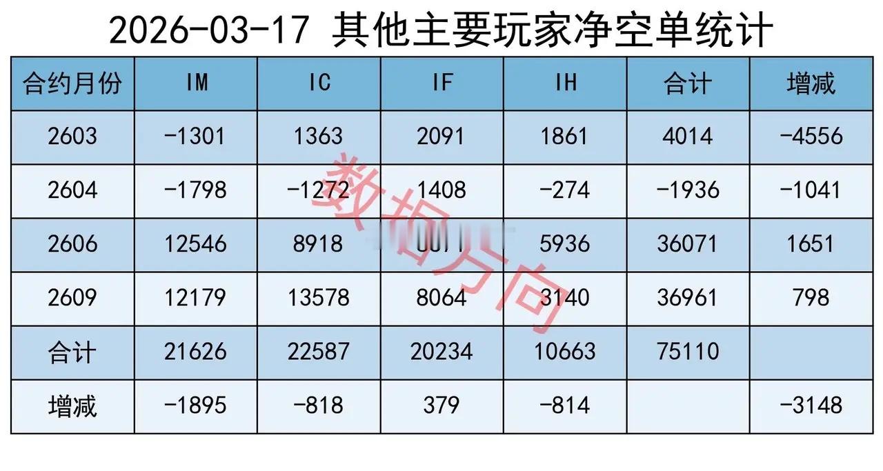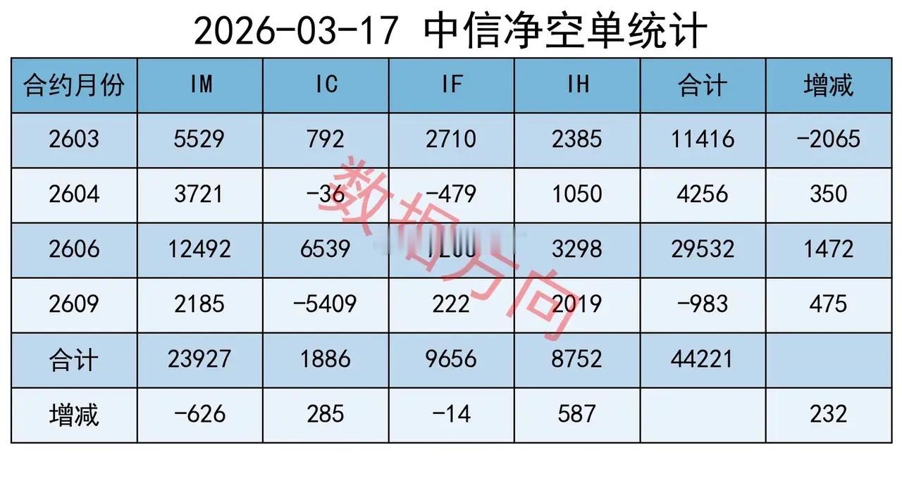 合计对IH、IF加空138手,合计对 IC、IM减空3054手。操作完成后,共持有净空单119331手。