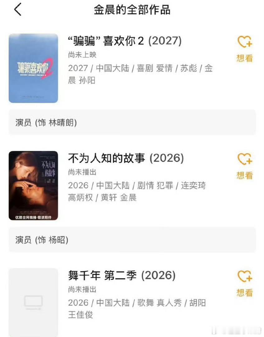 我天,金晨竟然还有这么多作品没播