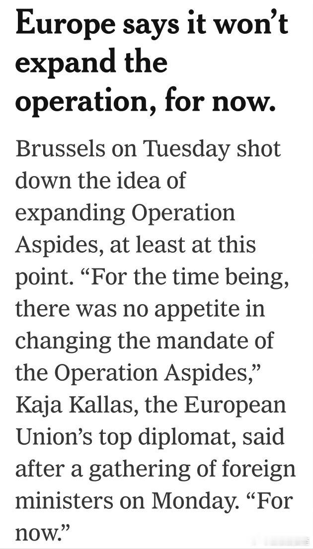 周二,欧洲明确表示:目前不会将“红海护航”行动扩展到霍尔木兹海峡,不现实