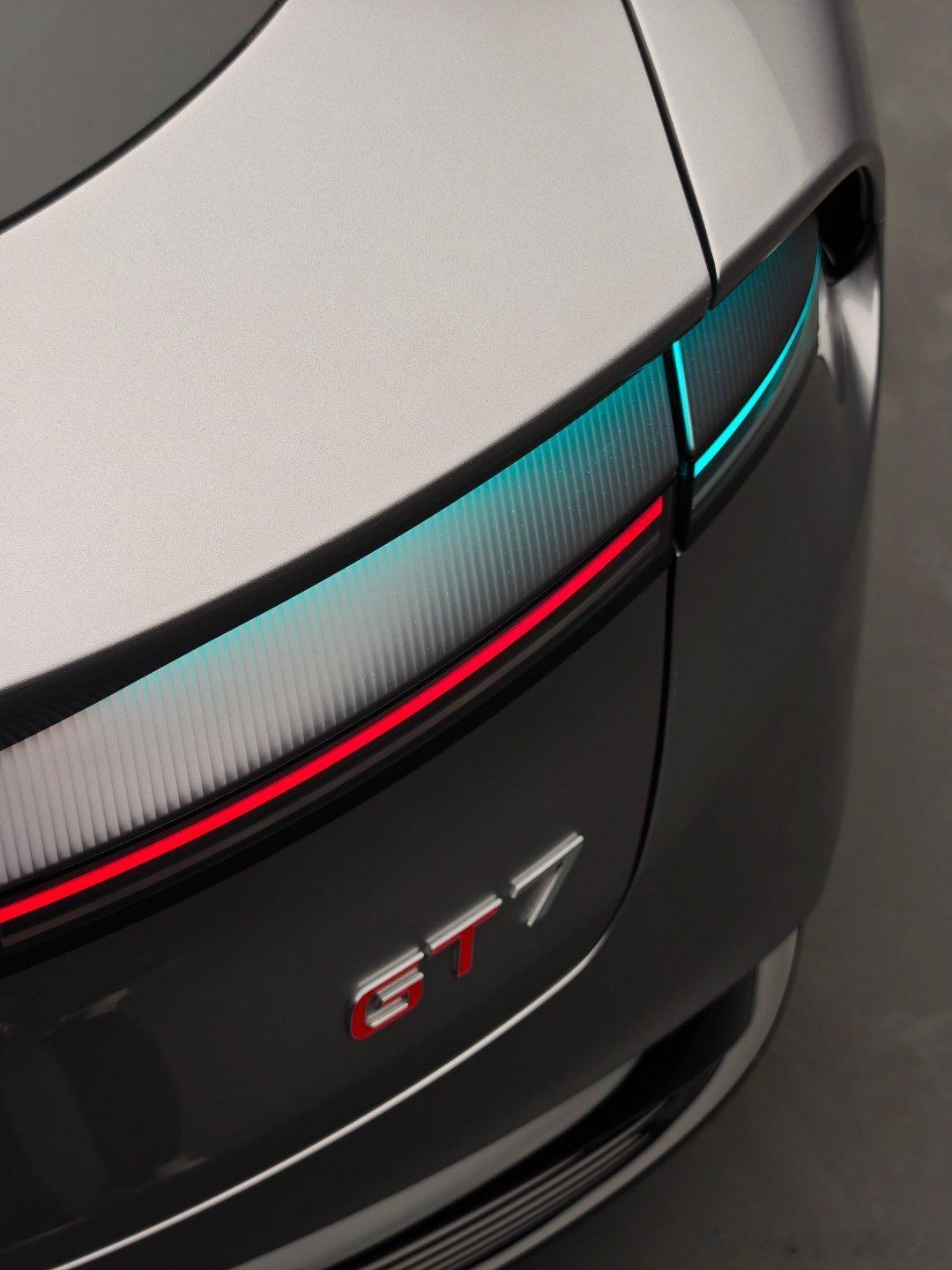 看启境GT7实车,尾灯还是有创新的,瀑布小蓝灯的位置,尾门接缝处的工艺处理需要非