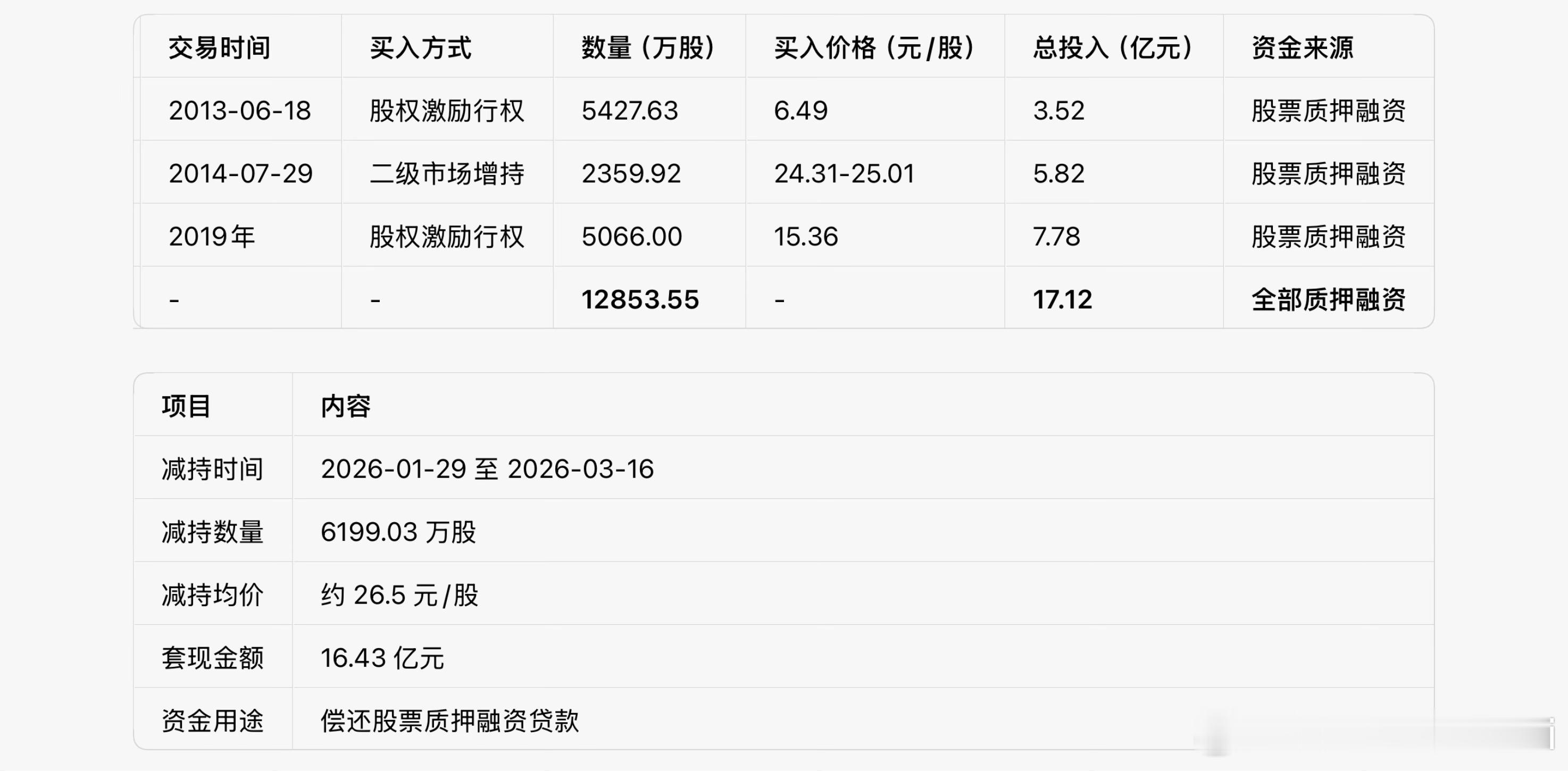 • 这次减持:还清近一半贷款,还净赚 3.3 亿