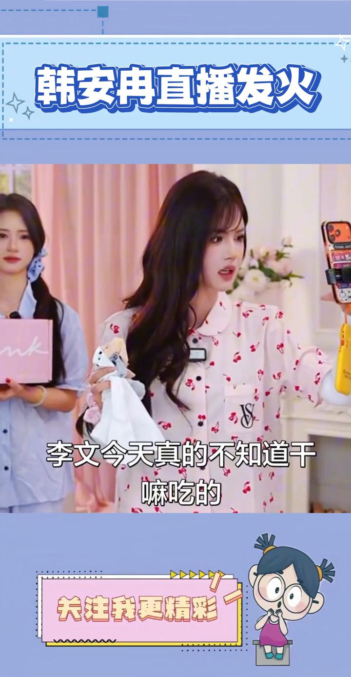 韩安冉直播发火。 韩安冉在直播中当场把助理都骂哭,只因在直播带货中业绩不理想,韩安冉突然对助理发火。 李文,今天真的不知道干什么吃的,气死了,真不是我要骂人。 当着几万网友面前直接把助理骂哭,不是私下批评,恐怕对助理心理伤害很大。