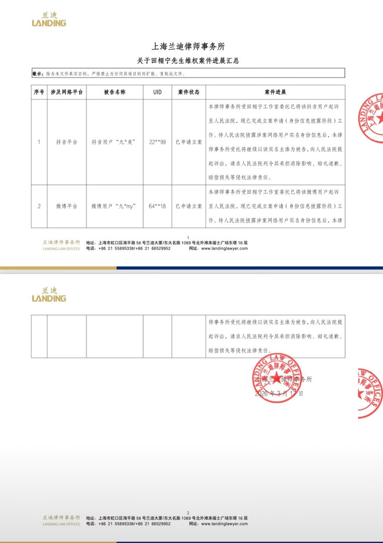 田栩宁工作室再次回应告了九成美,现在已经申请立案,这事儿真的闹大了。
