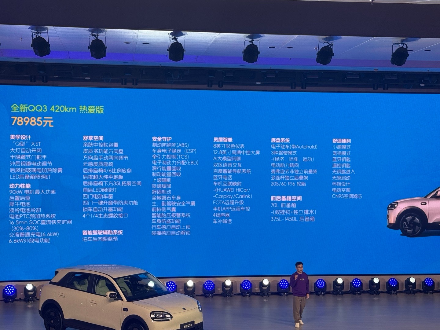 全新奇瑞QQ3预售价格公布,6.892万起,国民小车纯电新生!310km 热爱版:6.892万元310km 分享版:7.892万元420km 热爱版:7.8985万元420km 分享版:8.9985万元 全新QQ3预售开启