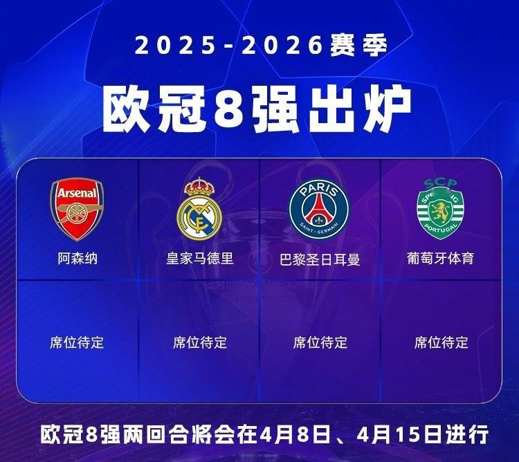 今日欧冠1/8决赛4组对决次回合落幕,本赛季欧冠8强率先确定4个席位。次回合,曼城 1-2 皇马。两回合总比分曼城1-5皇马。阿森纳2-0总比分3-1勒沃库森晋级八强将对阵葡萄牙体育。切尔西 0-3 巴黎圣日耳曼。两回合总比分切尔西2-8巴黎圣日耳曼。欧冠8强其中4席:阿森纳、皇家马德里、巴黎圣日耳曼、葡萄牙体育欧冠