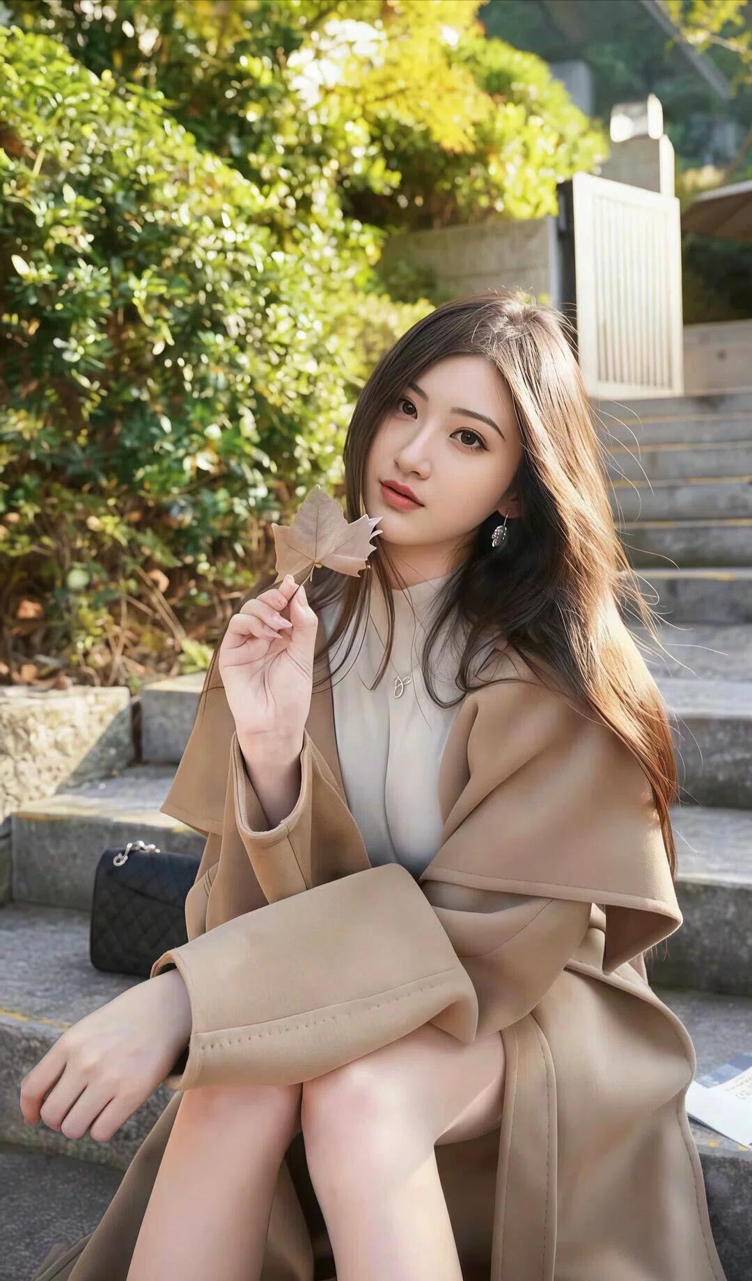 🍂 秋日氛围与人物气质 这组照片以秋日都市与自然场景为背景,金黄银杏、翠绿草木与复古建筑交织,营造出温柔慵懒的秋日氛围感。景甜以优雅知性的形象出镜,将成熟女性的魅力与秋日诗意完美融合。 👗 穿搭与造型 核心风格:以驼色系大衣/西装为核心单品,搭配简约内搭与裸色高跟鞋,整体色调温暖柔和,尽显高级感与干练气质。 内搭选择多样:灰色针织衫、白色高领、蕾丝吊带等,在温柔中增添了层次感与小性感。 配饰点缀:精致耳饰、细项链、choker颈圈等细节,让造型更显精致,同时呼应了整体的优雅调性。 发型妆容: 发型:乌黑长发或自然垂落,或微卷披肩,或低扎马尾,慵懒又不失精致,几缕碎发修饰脸型,更添柔美感。 妆容:清透底妆衬得肌肤白皙,眼妆温柔有神,唇色以豆沙红、裸粉色为主,淡雅又显气色,完美适配秋日氛围。 📸 场景与姿态 场景切换:从室内楼梯、公园长椅、都市街角到银杏大道,场景丰富却始终围绕“秋日”主题,金黄落叶与翠绿草木为画面增添了浓郁的季节感。 姿态神态: 她时而倚坐石阶/长椅,姿态舒展慵懒,眼神温柔含光; 时而手捧落叶、报纸,或轻撩发丝,尽显随性自然的氛围感; 时而侧身回眸,或倚靠石墙,身姿曼妙,将女性的柔美与干练平衡得恰到好处。 ✨ 整体美感 这组照片将秋日的温暖诗意与景甜的优雅知性完美结合,驼色系穿搭与金黄背景相得益彰,每一张都像一幅治愈的秋日画报,尽显成熟女性的温柔力量与高级质感。