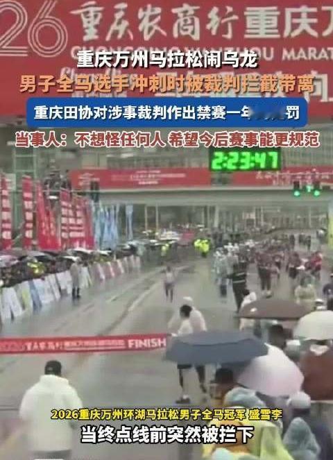 那个拦住马拉松冠军冲线的裁判,又被追加了处罚!在2026重庆万州环湖马拉松全马