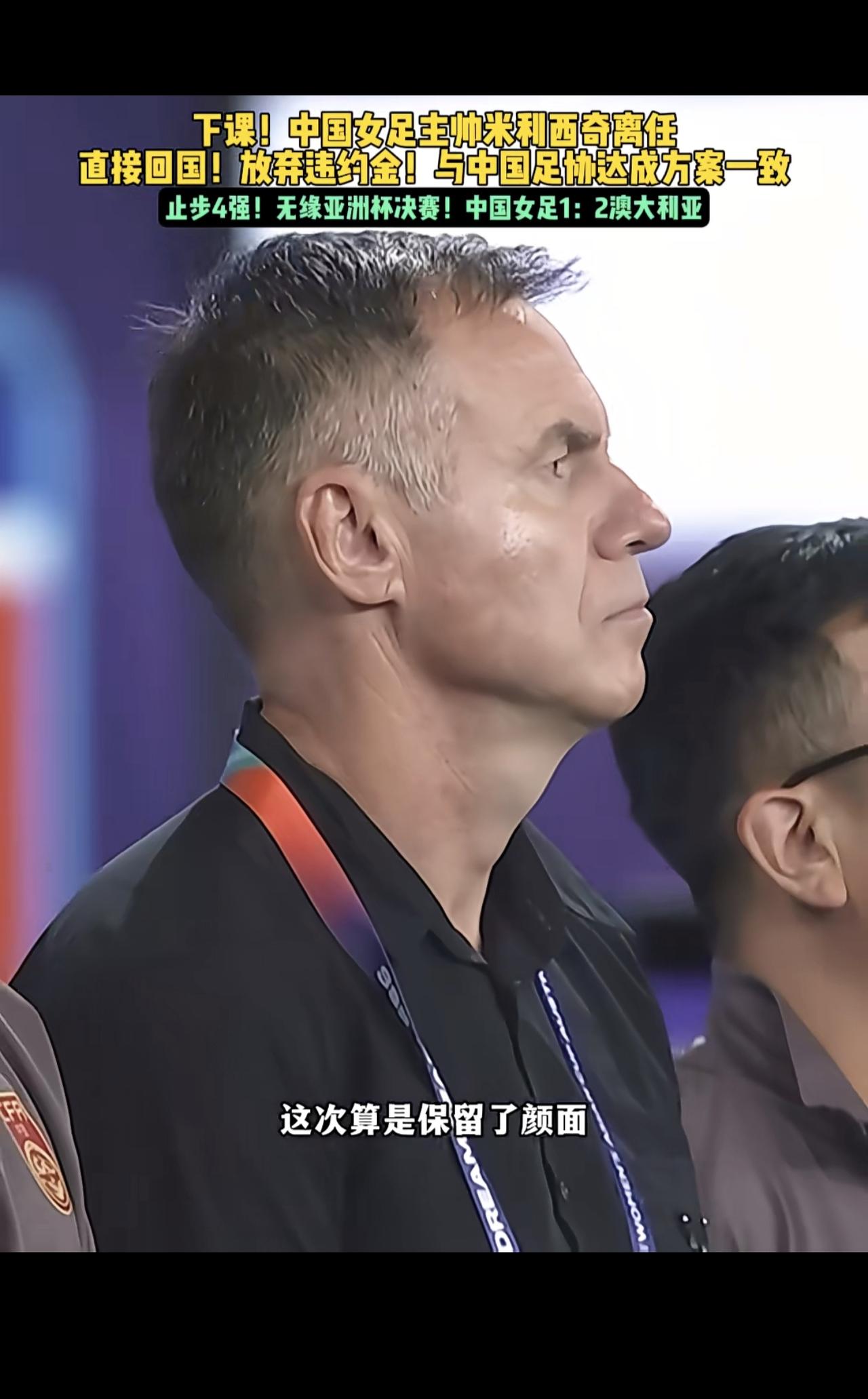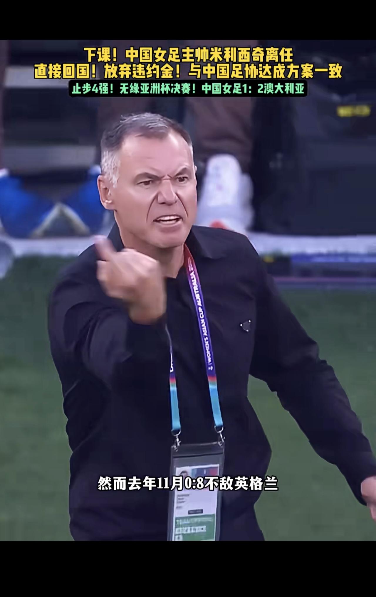 下课!放弃违约金!中国女足主帅米利西奇决定离任!直接回克罗地亚!