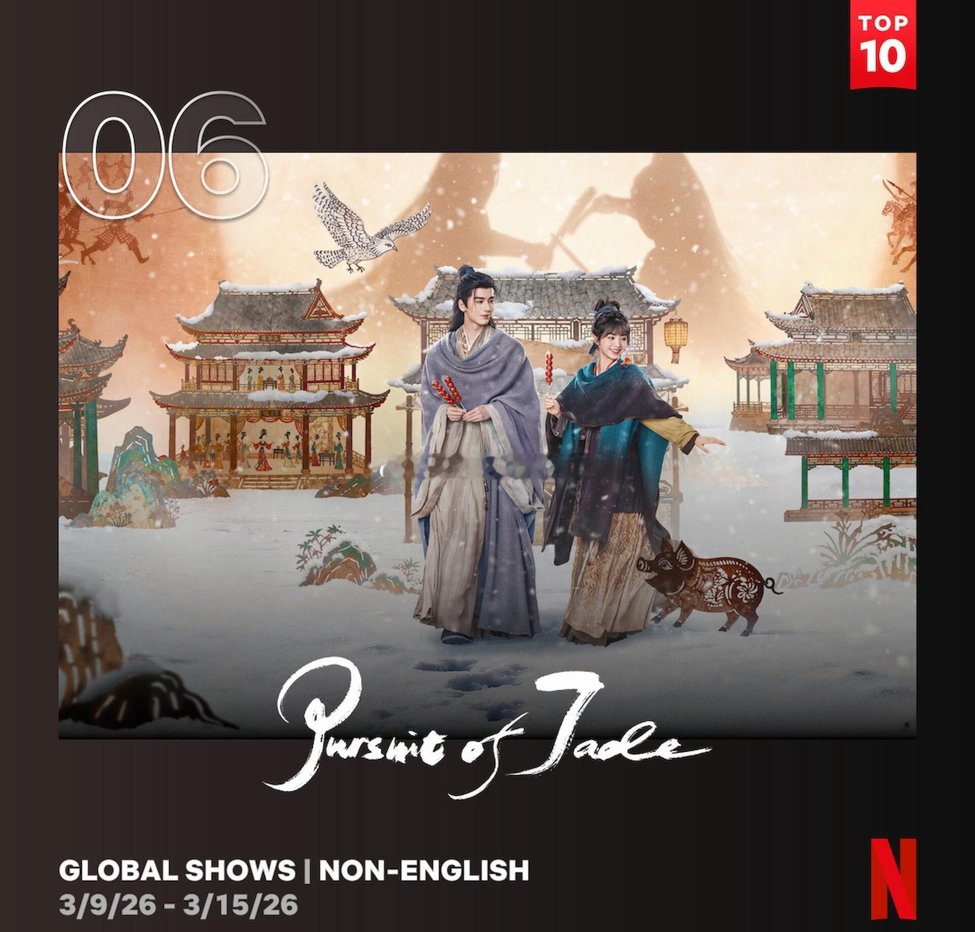 《逐玉》登上网飞官方周榜全球第六这是有史以来第一部内地剧登上网飞官方周榜打破纪录