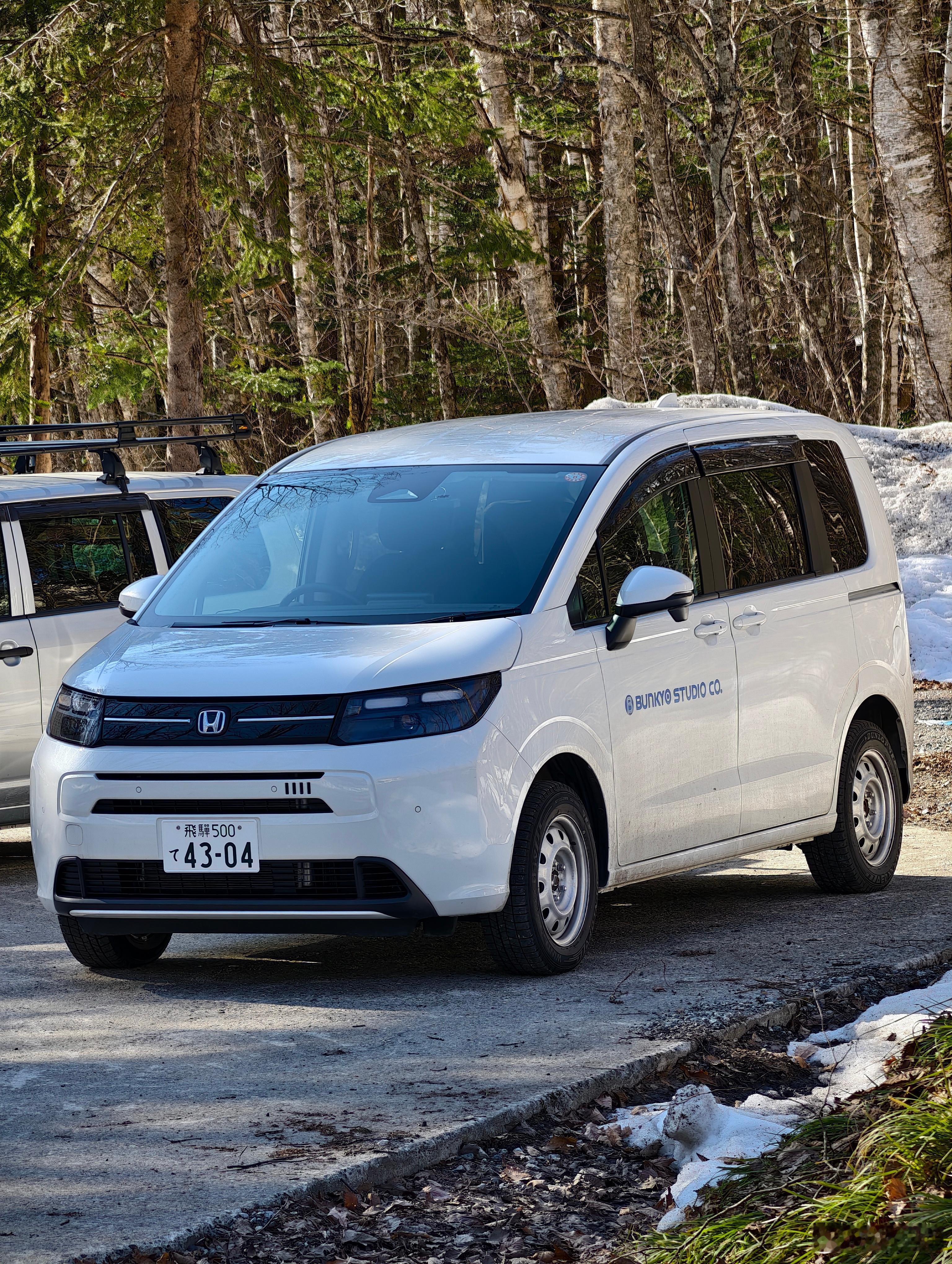 MPV偶遇斋版本田 Freed,本身是家用MPV,但低配也被拿来当商用车(営業車 / 業務用)。钢轮,白色车身,配置极简,可选 5座 / 6座 / 7座灵活布局,后排可以放平当小van用。商用版本有前驱也有四驱。但是在奥飞驒这种动辄积雪一米多的山区,雪胎加四驱是必须的。 日本·新穗高缆车