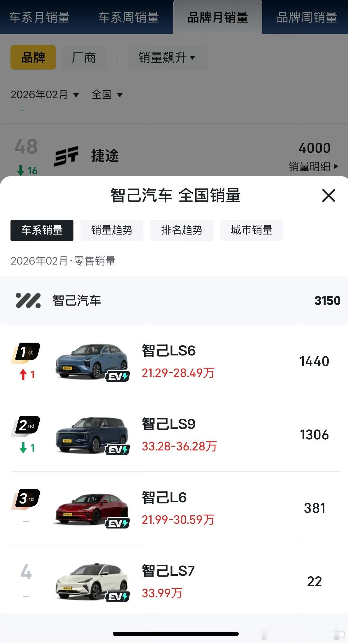智己2月份销量只有3150台,属实是有点难堪了。不过,2月是咱们的春节,是会有一