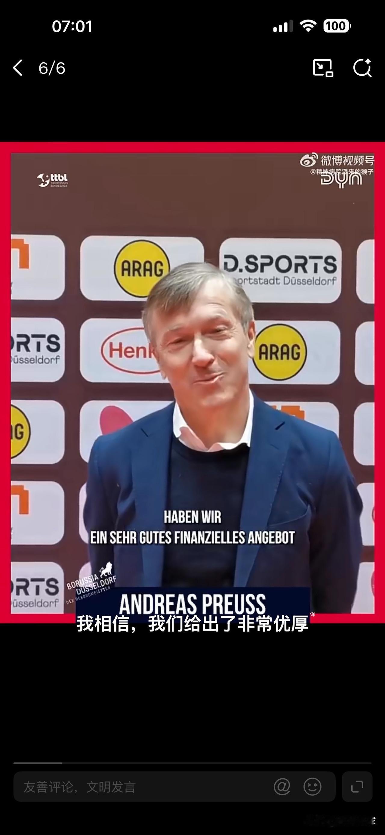 破案了:樊振东加盟杜塞,杜塞主席透露 3 个原因! 杜塞尔多夫俱乐部主席安德烈亚斯·普赖斯在记者追问下,透露 3 个原因: 优厚的待遇:杜塞尔多夫坦言,为邀请樊振东加盟,球队也付出了财务代价,提供优惠的待遇邀请他加盟。 波尔的友谊:去年八月,樊振东来到德国以后,在波尔的牵线搭桥下,三人就进行了一第一次会面。 杜塞尔多夫的影响力:作为德甲的豪门俱乐部,球队对任何球员都有着吸引力,球队和一流球员的结合,也将扩大这种影响力